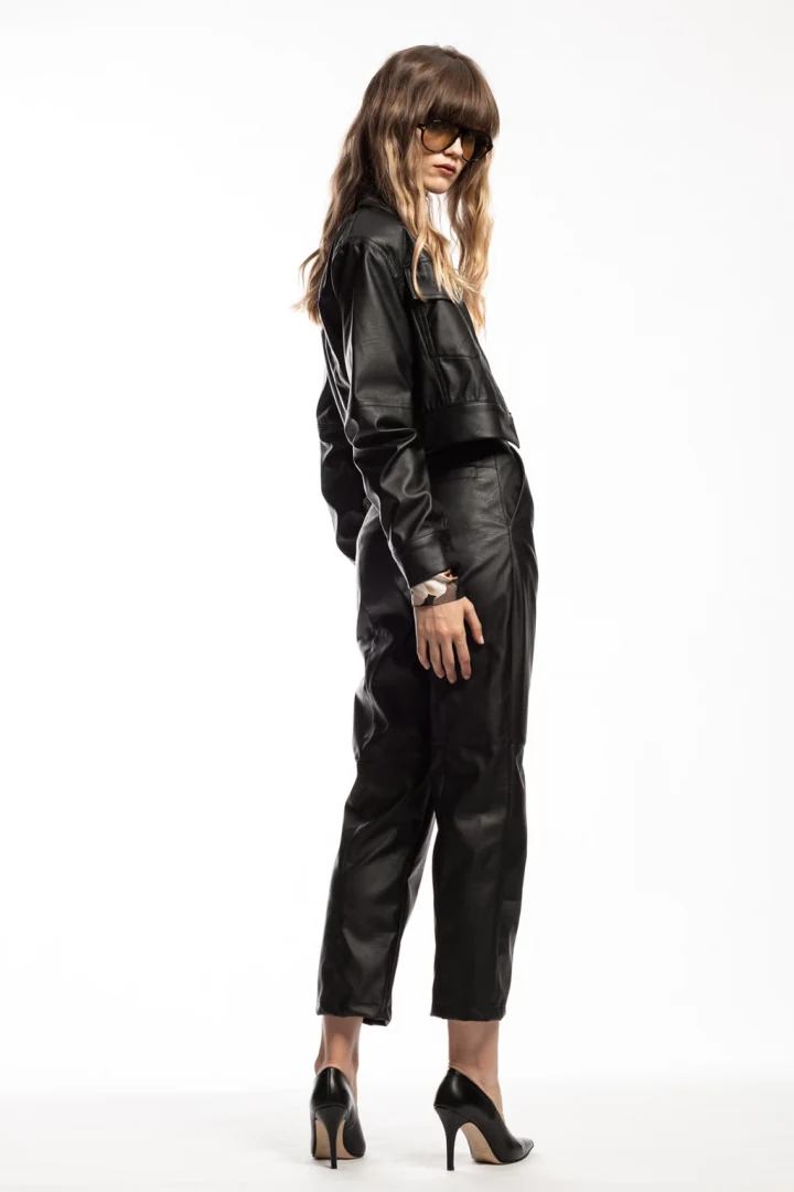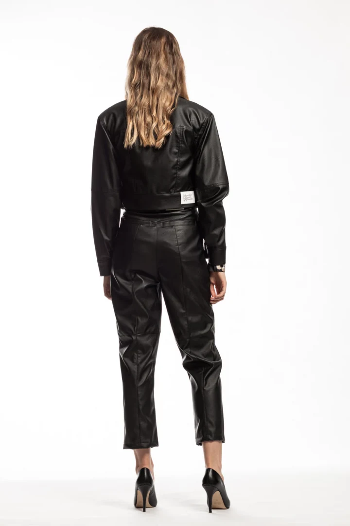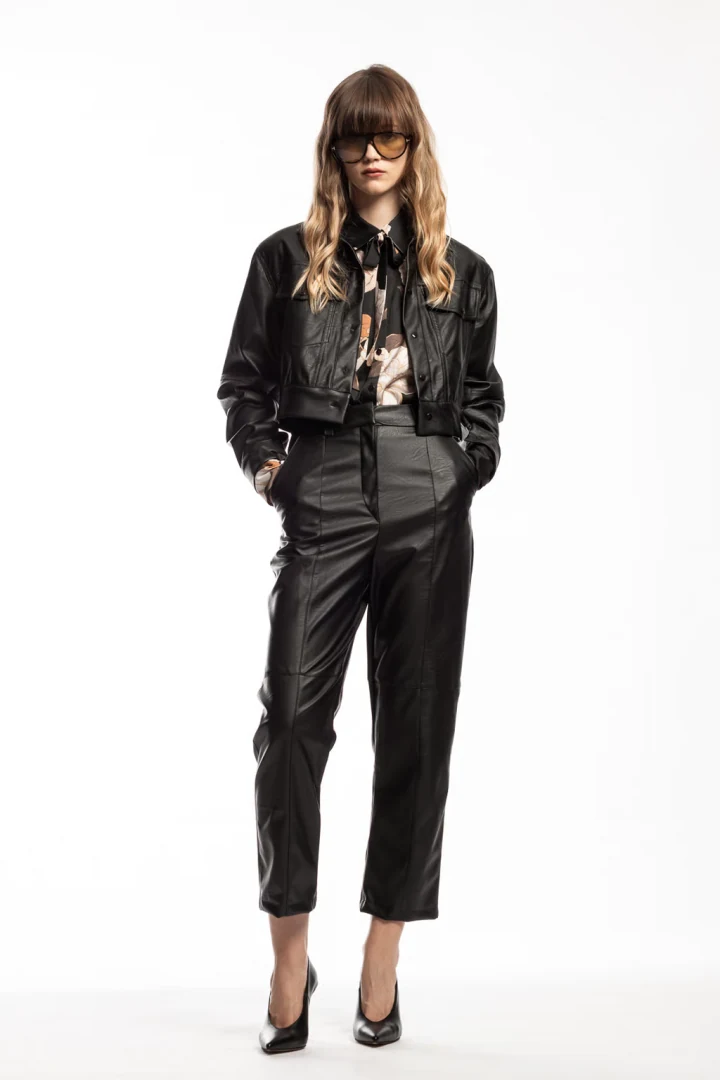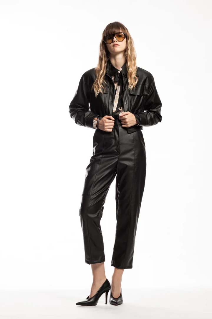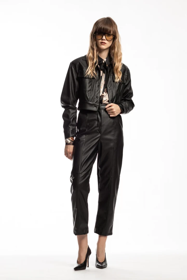 Κοντό δερματίνη shirt/jacket με βάτες και λεπτομέρειες με κουμπιά στα μανίκια. Διαθέτει δύο μεγάλες τσέπες δεξιά και αριστερά στο στήθος.