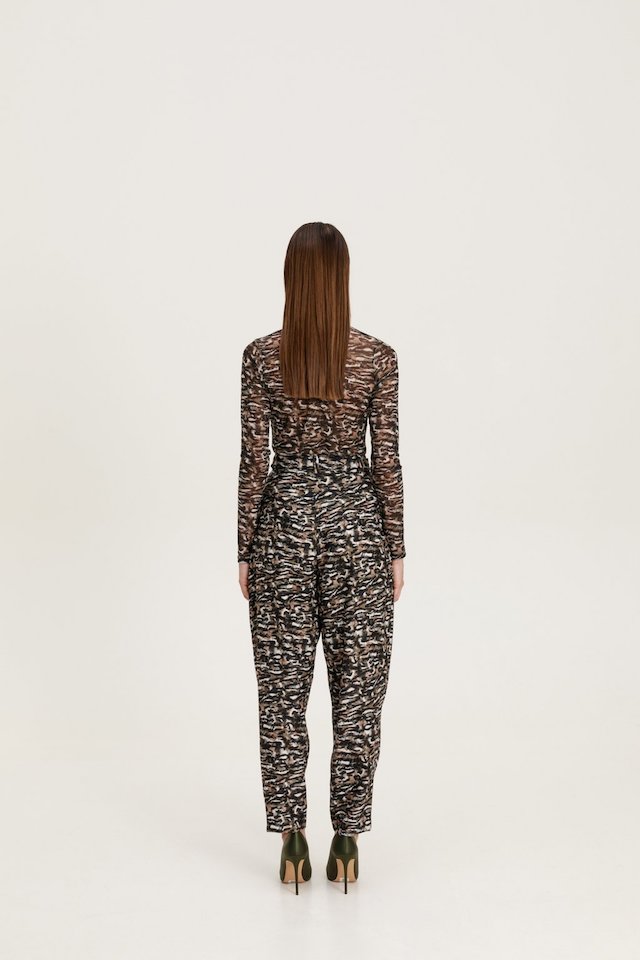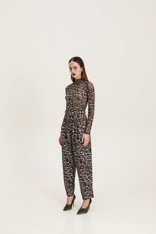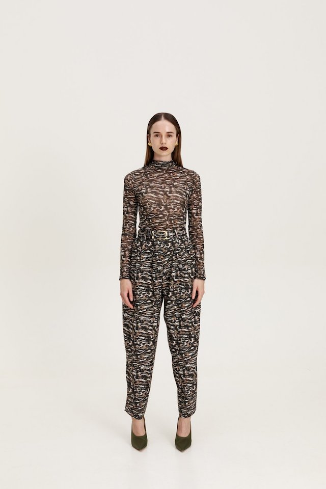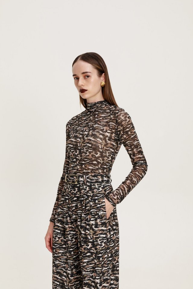 Slim fit tulle blouse with long sleeves and high neck.