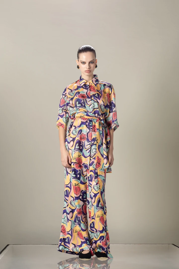Παντελόνι ψηλόμεσο σε φαρδιά, άνετη γραμμή με τσέπες και λάστιχο στην μέση.
