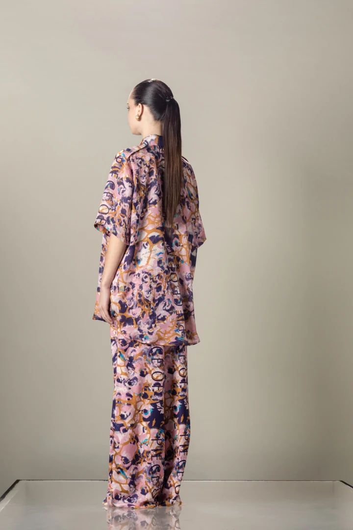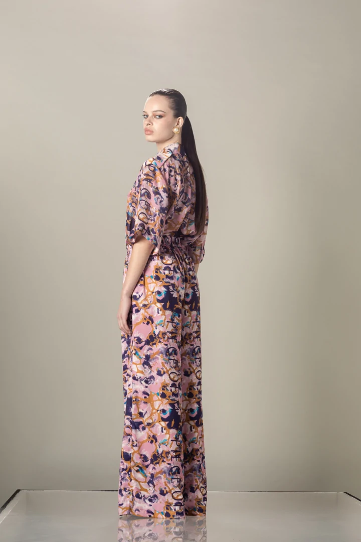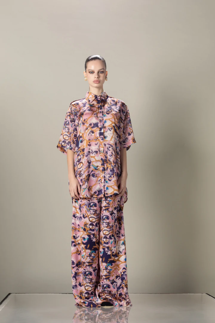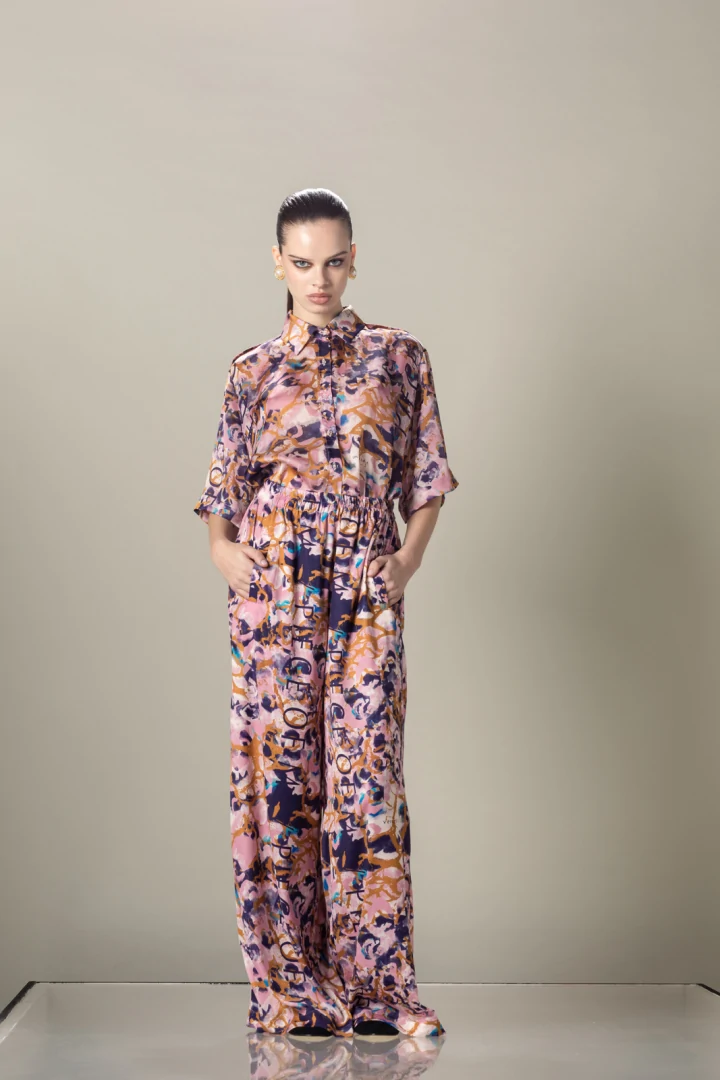 Παντελόνι ψηλόμεσο με λάστιχο στην μέση σε άνετη γραμμή με τσέπες μπροστά.