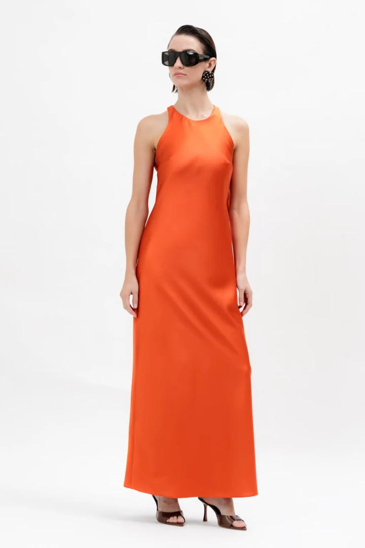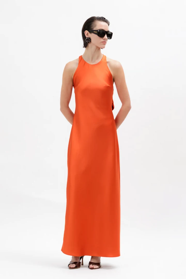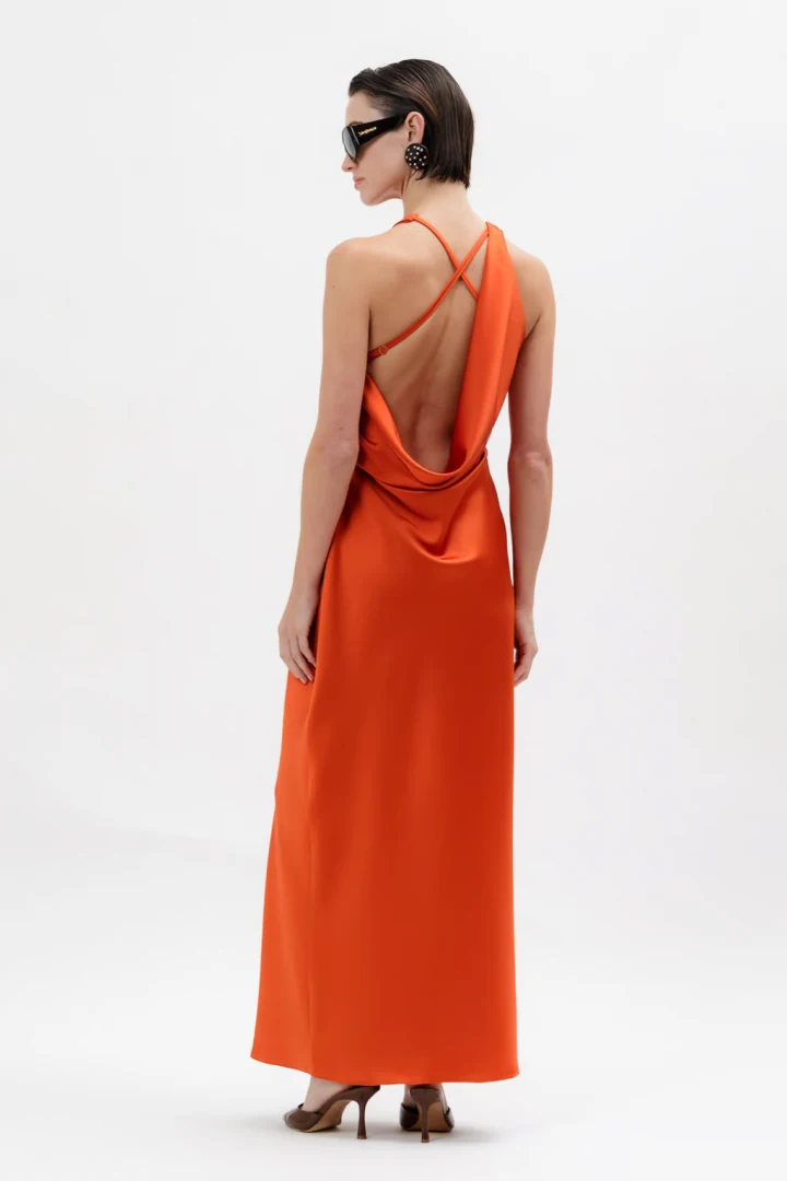 Αναδείξτε την πιο θηλυκή και κομψή πλευρά σας στα καλοκαιρινά events με το εκθαμβωτικό Stella Midi Dress από την A PIECE OF ME. Αυτό το εντυπωσιακό γυναικείο φόρεμα σε φωτεινή πορτοκαλί (orange) απόχρωση έχει σχεδιαστεί σε εξαιρετικά κολακευτική, ίσια γραμμή (slip dress style) που αγκαλιάζει αέρινα τη σιλουέτα. Διαθέτει λεπτές, ρυθμιζόμενες τιράντες για απόλυτα προσαρμοσμένη εφαρμογή. Το στοιχείο, ωστόσο, που κλέβει την παράσταση βρίσκεται στο πίσω μέρος: η βαθιά, ανοιχτή χιαστί πλάτη δημιουργεί υπέροχα, αριστοκρατικά ντραπαρίσματα, χαρίζοντας μια δόση διακριτικού αισθησιασμού σε κάθε σας κίνηση. Κατασκευασμένο με σεβασμό προς το περιβάλλον από 51% ανακυκλωμένο πολυεστέρα, 45% πολυεστέρα και 4% ελαστάν, προσφέρει μια μεταξένια, ρευστή αίσθηση και την ιδανική ελαστικότητα για άνεση. Η απόλυτη επιλογή για κοκτέιλ πάρτι, γάμους και ξεχωριστές βραδινές εξόδους!