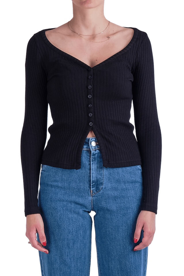 With 90's references, Alma will become your favorite wardrobe item for this year. His line is fitted and hugs the body. While you can wear it over tops like a classic cardigan we suggest you treat it like a piece that can be worn alone. Open the first and last buttons for a sneaky leather look and try it on wide leg jeans. Made exclusively in Greece.