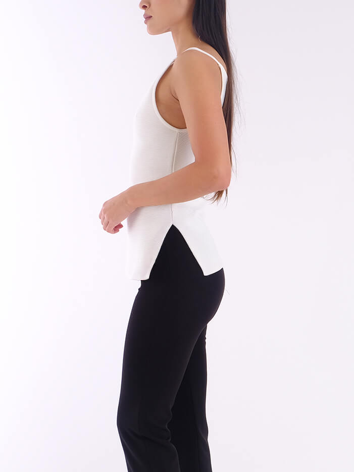 Upgrade your basic wardrobe with this rib knit top in a regular fit, ideal for elegant everyday looks. It features discreet side splits that offer a better fit in the belly and hip area, ensuring comfort and freedom of movement. The textured rib fabric hugs the body in a discreet way, making it ideal for both layering and wearing alone. Combine it with denim pants, wide-leg lines or high-waisted skirts for a timeless, effortless look.