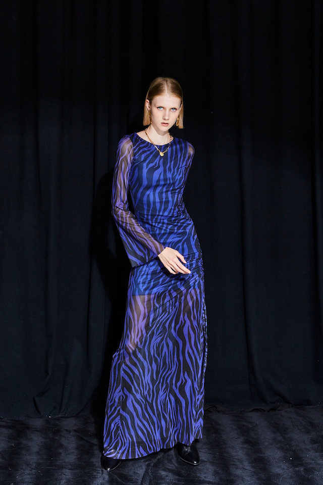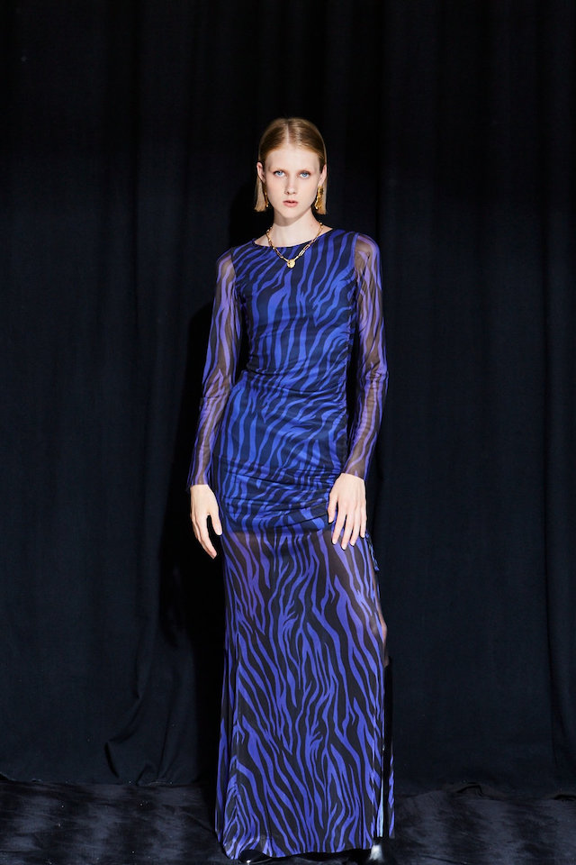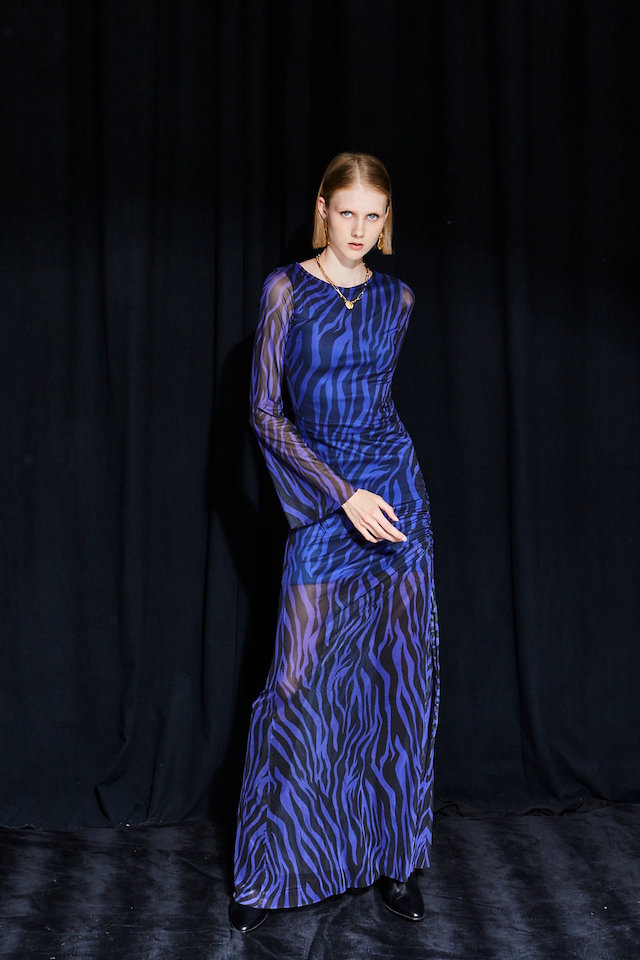 Ananke Brianne Zebra Blue Printed Mesh Dress