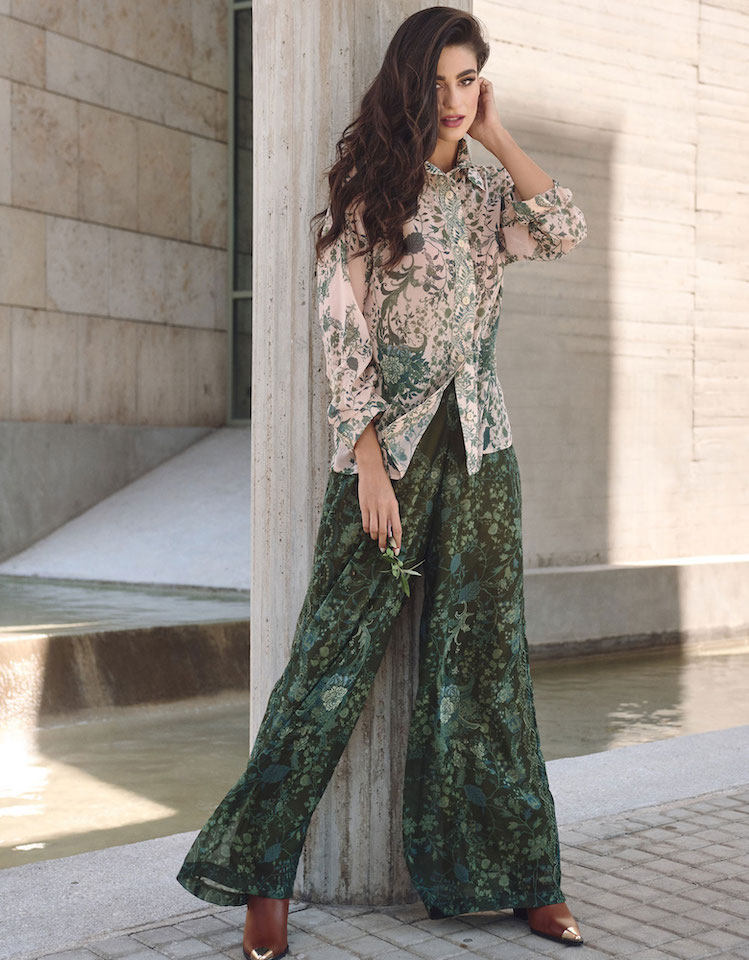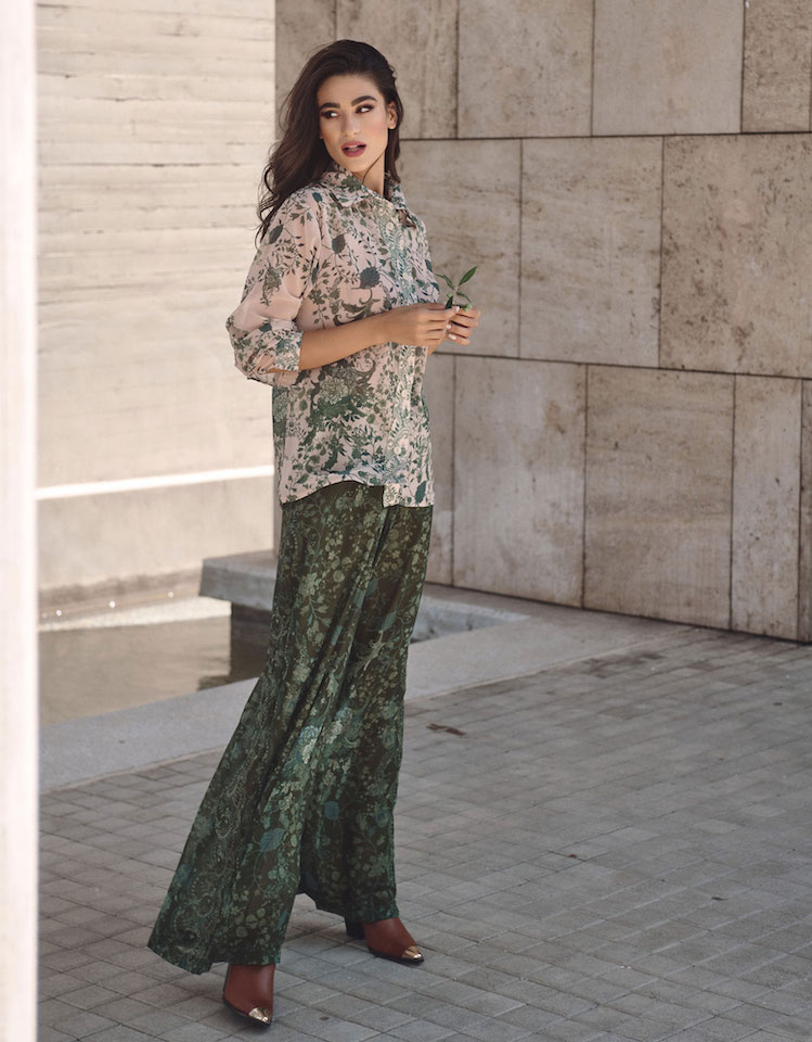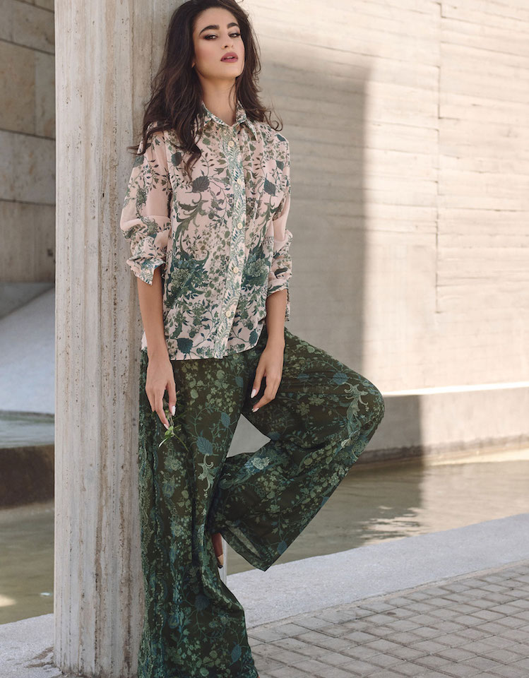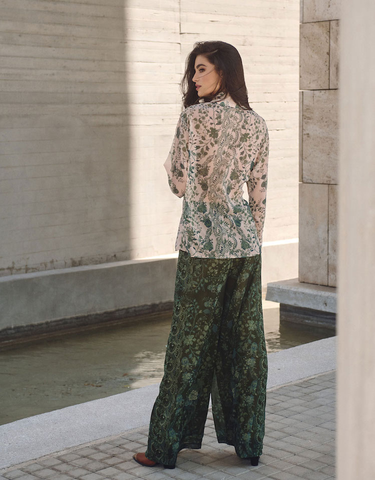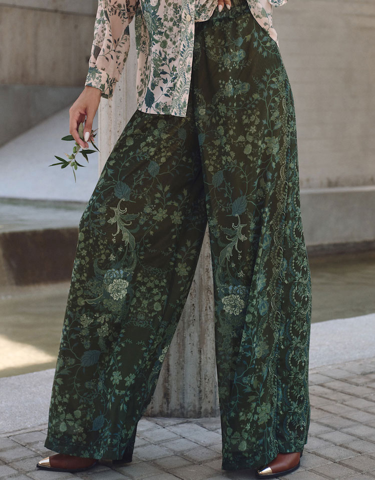 Semi-transparent, wide-leg pants with elastic waist and lining.