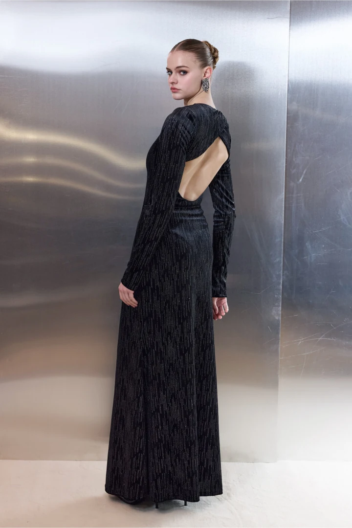 Αυτή η βελούδινη μάξι φούστα αποπνέει εκλεπτυσμένη γοητεία και διαχρονική κομψότητα. Κατασκευασμένη από απαλό, πολυτελές βελούδο με διακριτικές λαμπερές πινελιές, προσφέρει μια ρευστή, επιμήκη σιλουέτα που ενισχύει την κίνηση και τη θηλυκότητα. Σχεδιασμένη για να συμπληρώνει εντυπωσιακά τοπ και κορμάκια, αυτή η φούστα δημιουργεί μια ισορροπημένη αλλά και εντυπωσιακή εμφάνιση. Ιδανική για βραδινές περιστάσεις, συνδυάζεται αβίαστα με το ασορτί βελούδινο κορμάκι για ένα εκλεπτυσμένο, ταιριαστό σύνολο.