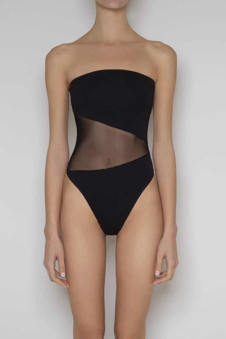 Βαμβακερό κορμάκι: 94% βαμβάκι, 6% ελαστάνη με μαύρο ελαστικό τούλι