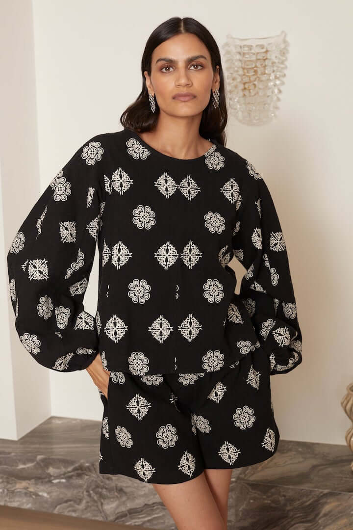 The ossa top features elegant embroidery and pairs perfectly with the asher shorts for a chic and effortless look. Experience the perfect balance of style and comfort with this must-have top.
