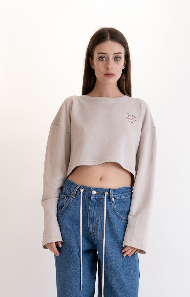 Kendra is Salt & Pepper's new loose cropped sweatshirt, decorated with embroidery. You can combine it with tapered jeans, cargo pants or cotton overalls for a comfortable outfit for the whole day.