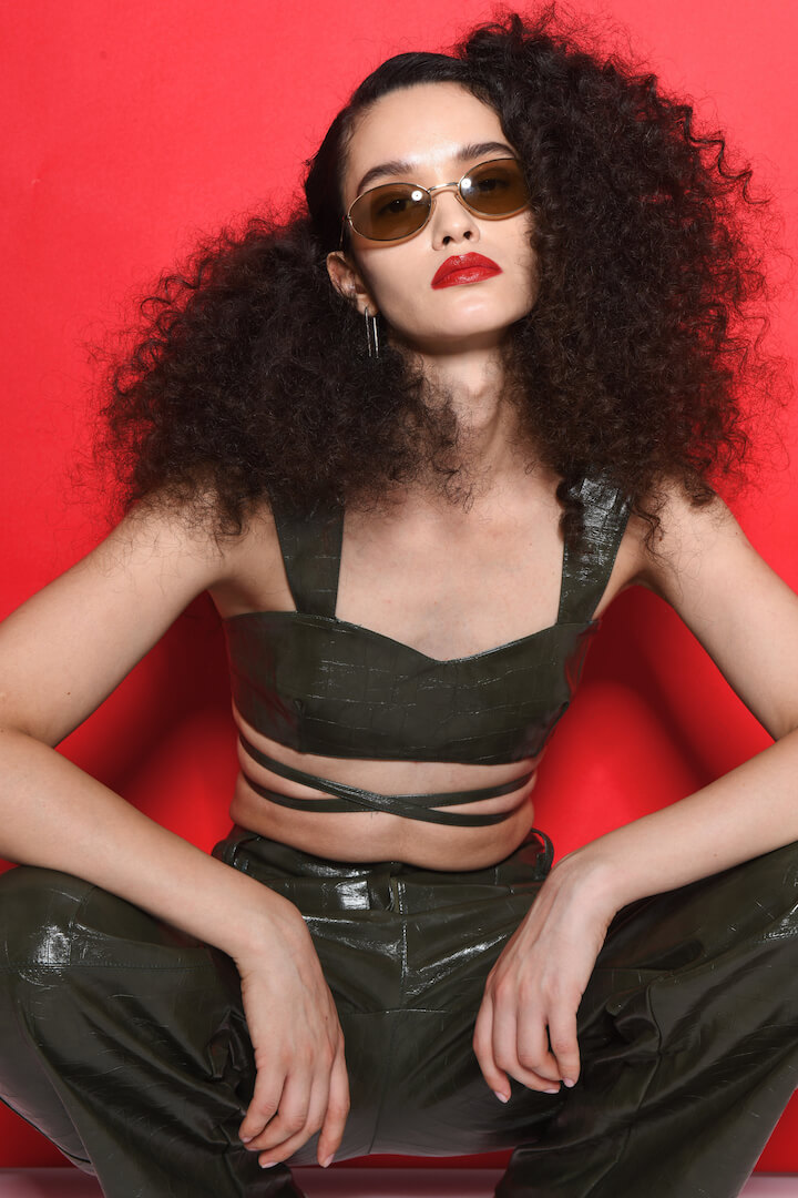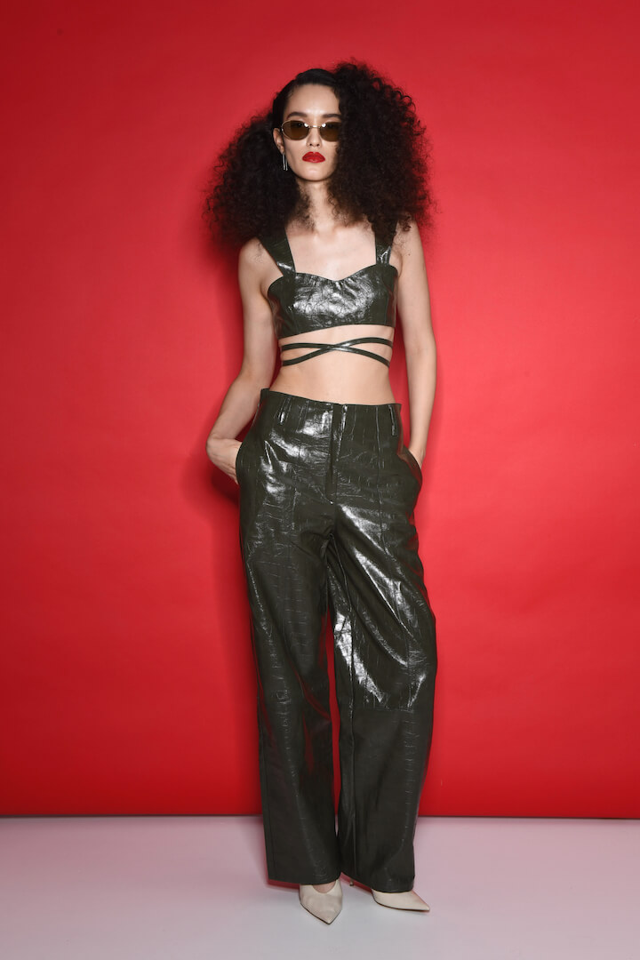 Koresho Alice Olive Faux Leather Crop Top