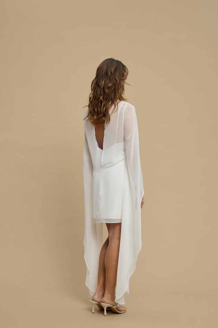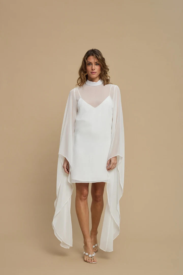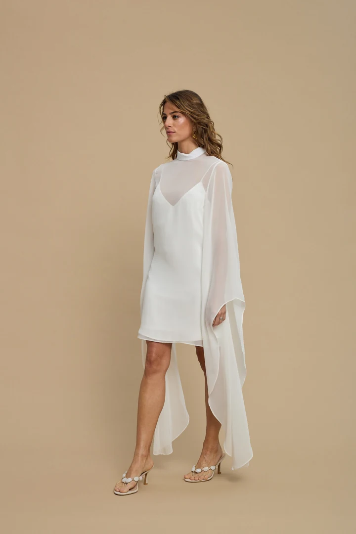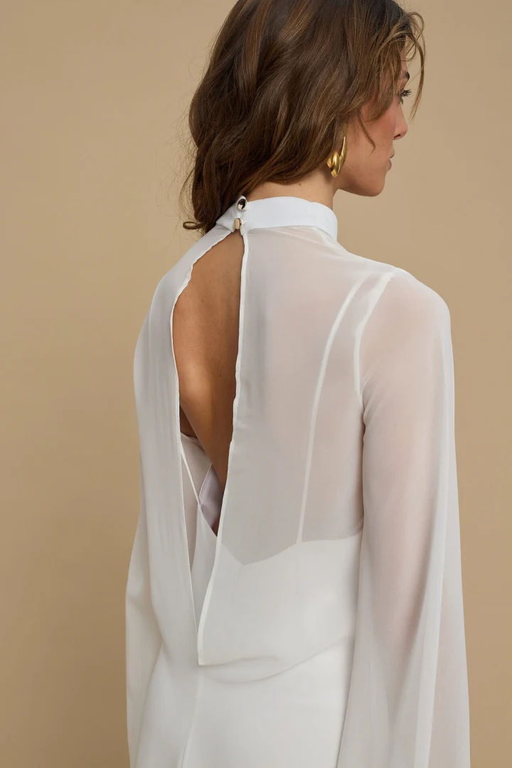 Μαγνητίστε τα βλέμματα σε κάθε σας βραδινή ή επίσημη εμφάνιση με το Almea Dress White της La Chaine. Πρόκειται για ένα εντυπωσιακό, αέρινο γυναικείο mini φόρεμα σε καθαρό λευκό χρώμα, το οποίο συνδυάζει τον ρομαντισμό με τη σύγχρονη κομψότητα. Το σχέδιο απογειώνεται με την ιδιαίτερη κάπα σε στρώσεις (layered cape) που πέφτει αρμονικά γύρω από τον λαιμό και τους ώμους. Ο πρωτότυπος σχεδιασμός του παντρεύει τον ψηλό λαιμό με ένα διακριτικό V άνοιγμα, ενώ η εντυπωσιακή έξω πλάτη (open back) δίνει τον απόλυτο θηλυκό χαρακτήρα. Είναι ραμμένο από 100% PES, διαθέτοντας ανάλαφρη υφή με λεπτές ρίγες (thin stripes) που προσφέρουν εξαιρετική κίνηση στο ρούχο.