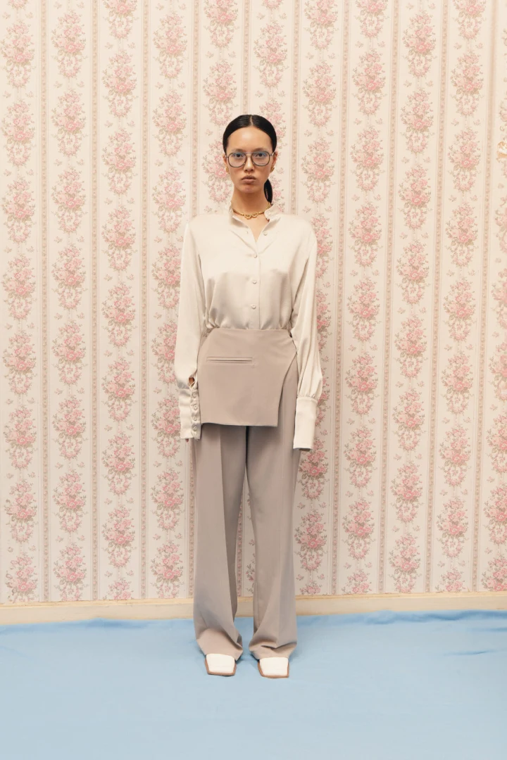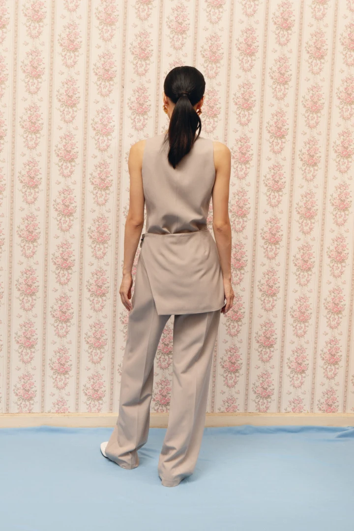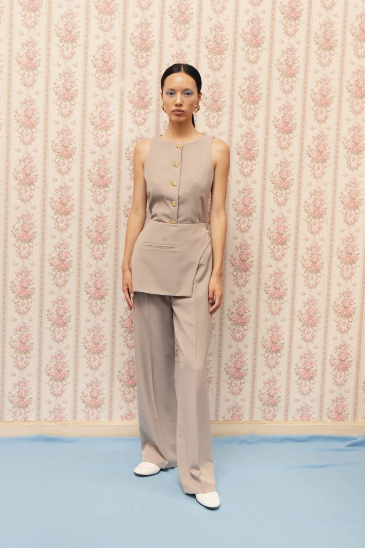 Ένα παντελόνι σε ίσια γραμμή με αφαιρούμενη ζώνη, μέρος του τριθέσιου κοστουμιού LUNACODE για να υποδεχτείτε τις μέρες του γραφείου με τον πιο κομψό τρόπο.