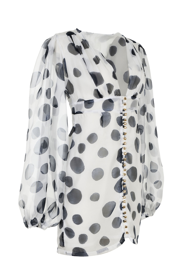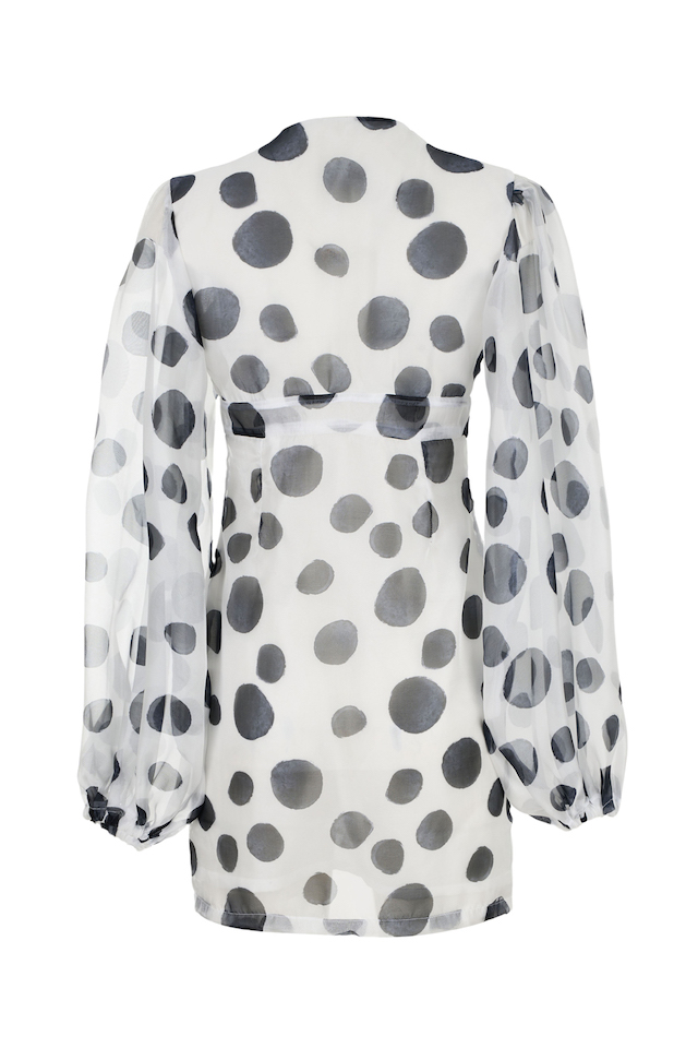 Mini camisole dress with long airy sleeves with elastic and lined.