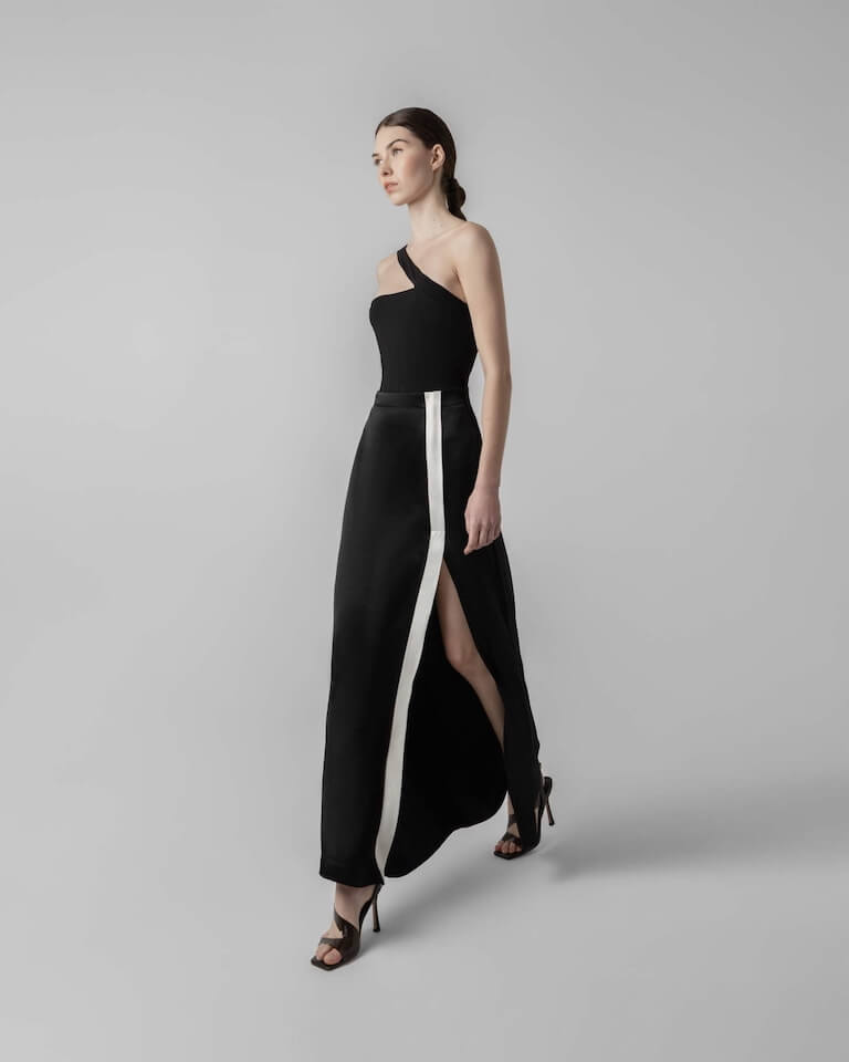 This maxi skirt with a wide opening at the side will impress and add an impressive touch to any look.