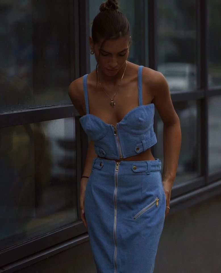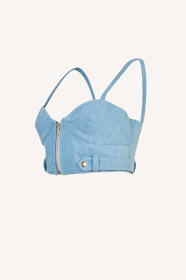Bustier with strap and zipper with gold details.