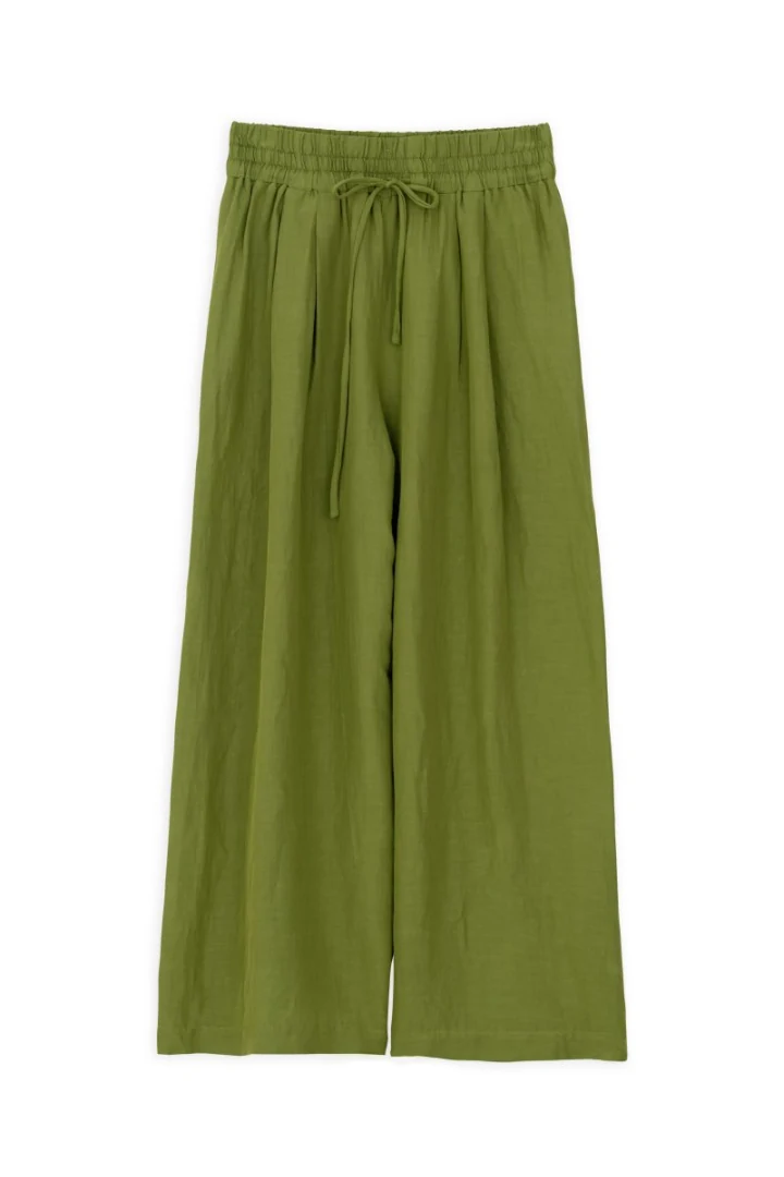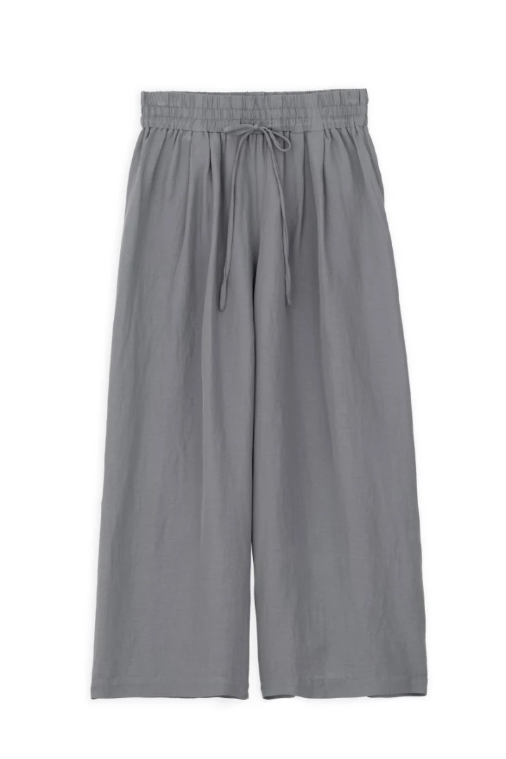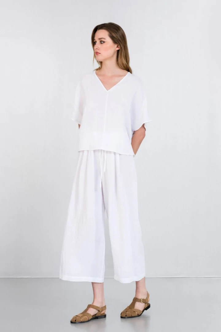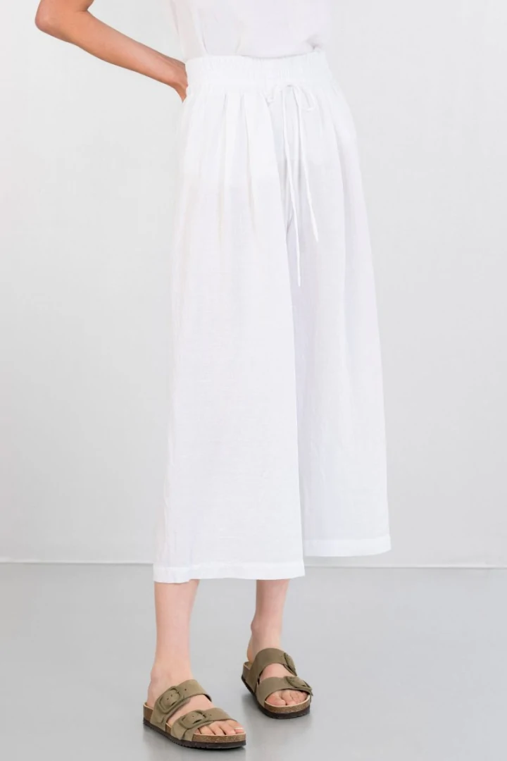 Jupe culotte gauze, ψηλόμεση, με λάστιχο στη μέση, με κορδόνι που σφίγγει στο μπροστά μέρος και τσέπες στο πλάι