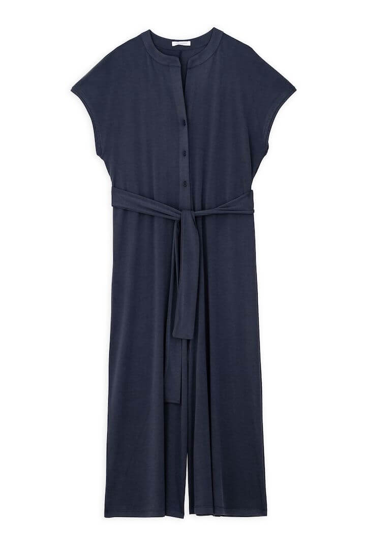 Philosophy jumpsuit, with buttons at the front, belt at the waist and pockets at the side.
