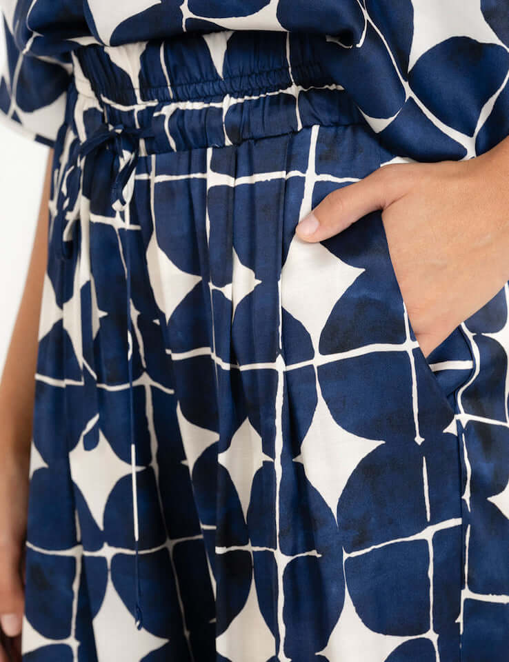 Philosophy high-waist trousers with satin lining, pockets and elastic waist. Color: dark blue