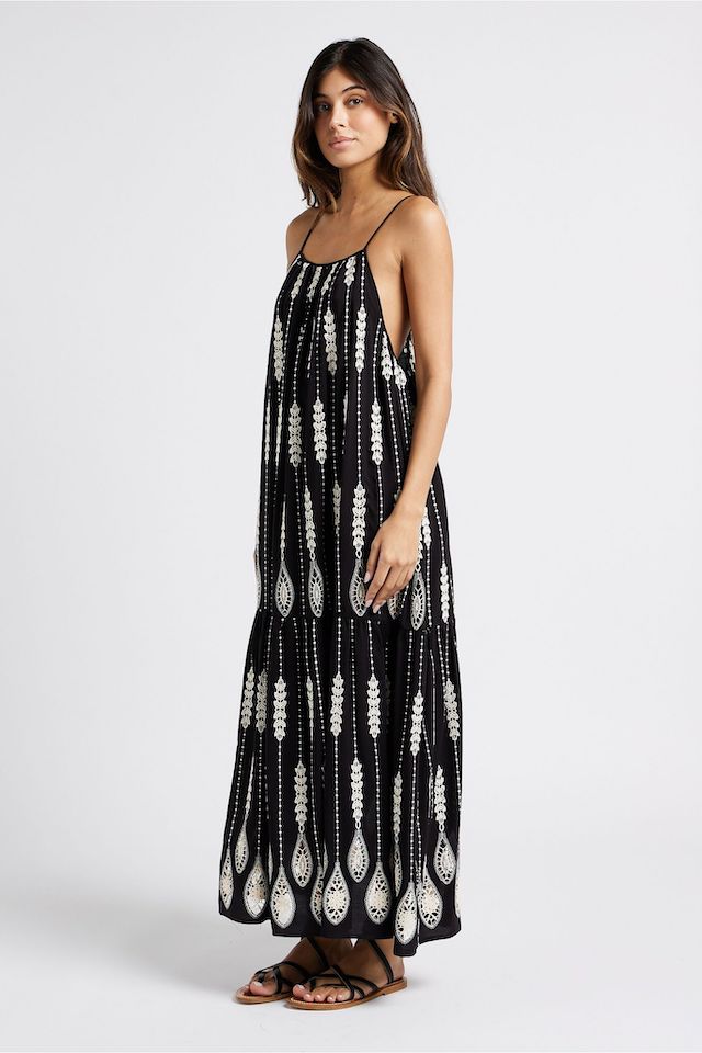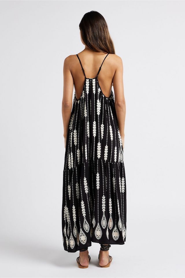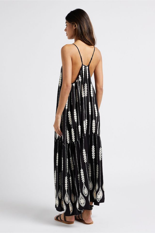 Embroidered dress by the French company See U Soon. Perforated embroidery details on the top, ruffles on the bottom. Slim adjustable straps.