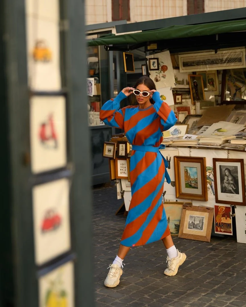 SOBOHEMIAN Milena Dress (Terracotta & Blue)