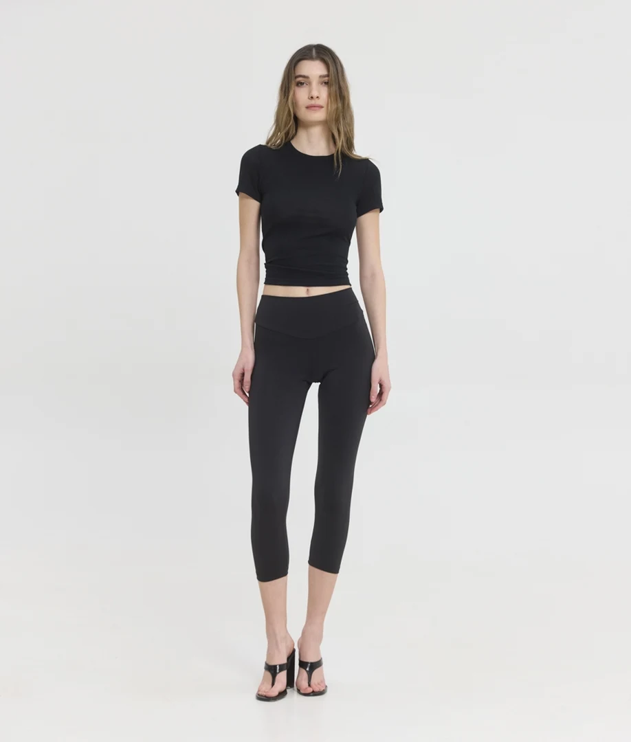 Δώστε μια athleisure πνοή στην καθημερινότητά σας με το Timeless Capri σε διαχρονικό μαύρο χρώμα (black) από τη Sunsetgo. Αυτό το γυναικείο ελαστικό κάπρι κολάν επαναφέρει στο προσκήνιο το απόλυτο trend, συνδυάζοντας την άνεση με το σύγχρονο street style. Διαθέτει μια ενσωματωμένη, φαρδιά φάσα (band) στη μέση, η οποία αγκαλιάζει ομοιόμορφα και κολακεύει τη σιλουέτα, προσφέροντας ασυναγώνιστο, σταθερό κράτημα. Η εξαιρετική του σύνθεση από 87% πολυεστέρα και 13% spandex του χαρίζει ανθεκτικότητα, μέγιστη ελαστικότητα για ελευθερία κινήσεων και μια υπέροχη, εφαρμοστή γραμμή που λειτουργεί σαν δεύτερο δέρμα. Είναι ένα πραγματικό πολυμορφικό κομμάτι: φορέστε το με crop tops για τις προπονήσεις σας ή συνδυάστε το ανατρεπτικά με oversized σακάκια για μια εντυπωσιακή, fashion-forward εμφάνιση.