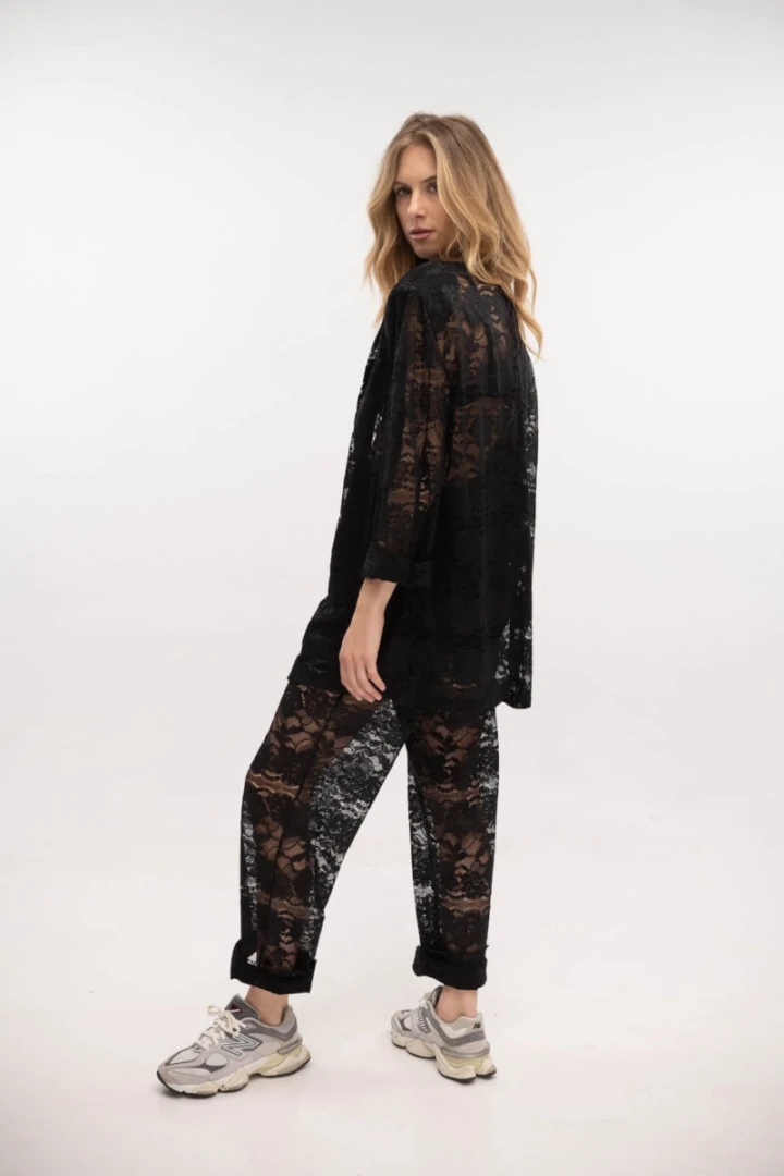Κάντε μια δήλωση με αυτό το oversized δαντελένιο σακάκι, που συνδυάζει τέλεια την κομψότητα και το στυλ.