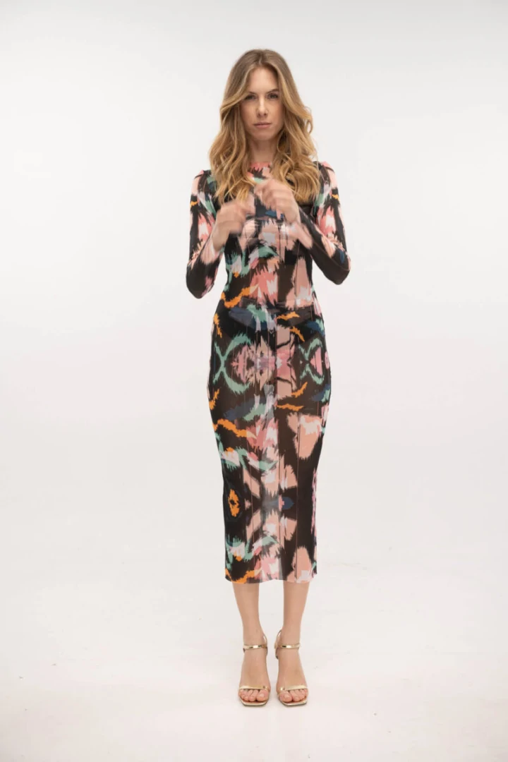 Νιώστε αυτοπεποίθηση με το φόρεμα με τυπωμένο πλέγμα. Συνδυάζεται άψογα με μπότες ή τακούνια που θα σας πάνε παντού.