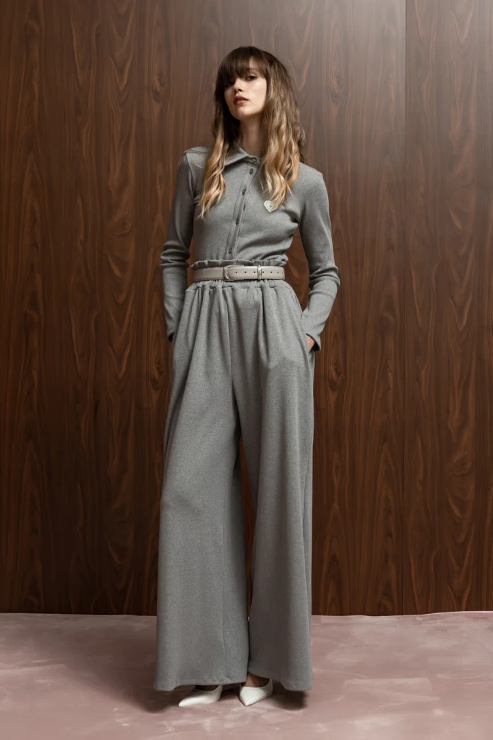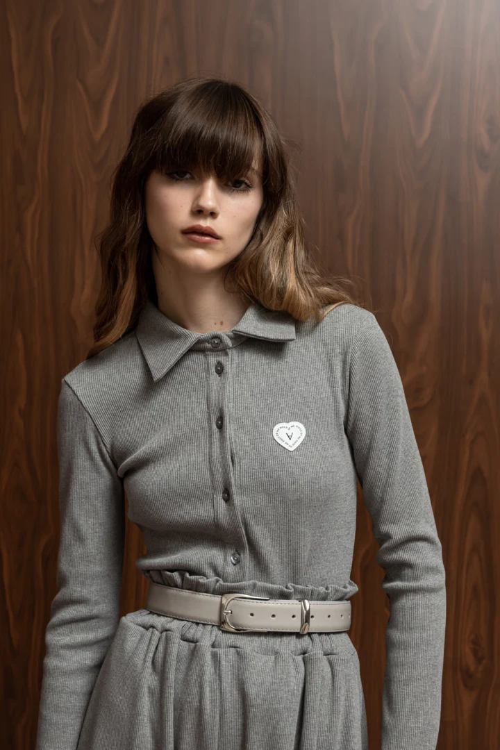 Μακριμάνικο ριπ μπλουζάκι με γιακά και κουμπιά. Έχει λεπτομέρεια apom καρδιά στο στήθος.