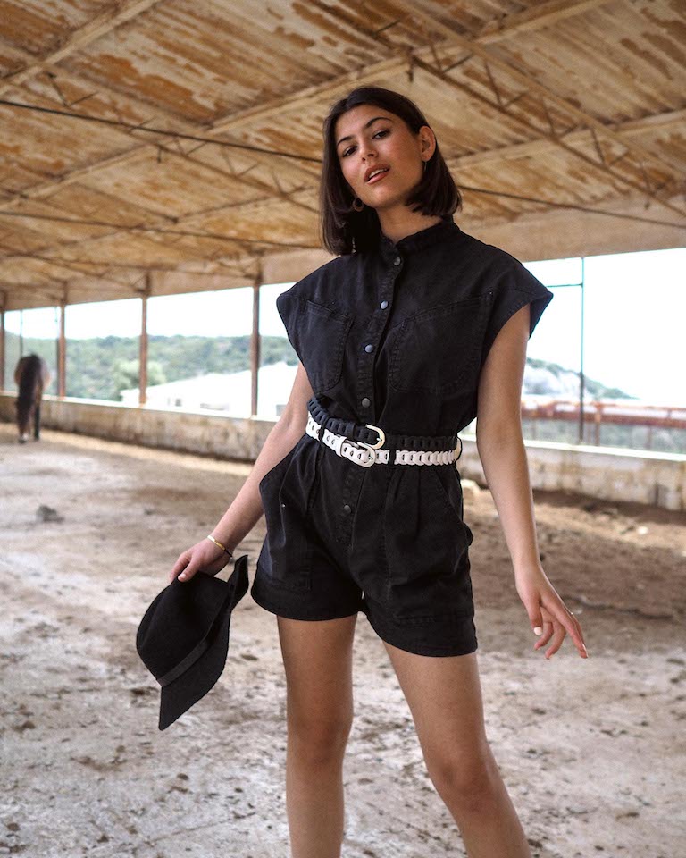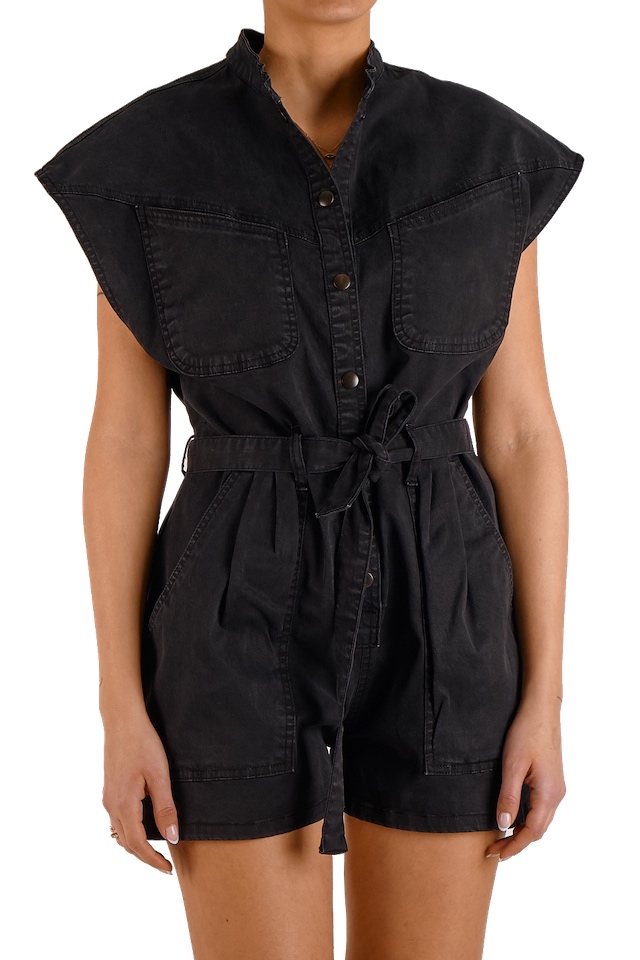 One-piece από μαλακό και αέρινο viscose ύφασμα. Σχεδιασμένο σε φαρδιά γραμμή με μεγάλους ώμους και ζώνη στη μέση για να δημιουργεί με απλότητα σχήμα κλεψύδρας. Ευκολοφόρετο, ανοίγει μπροστά με τρουκ κουμπιά και διαθέτει τσέπες πίσω, μπροστά και στο στήθος. Κατασκευασμένο αποκλειστικά στην Ελλάδα.
