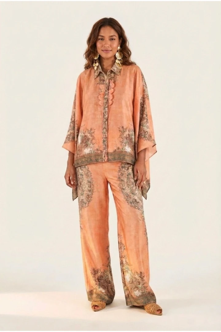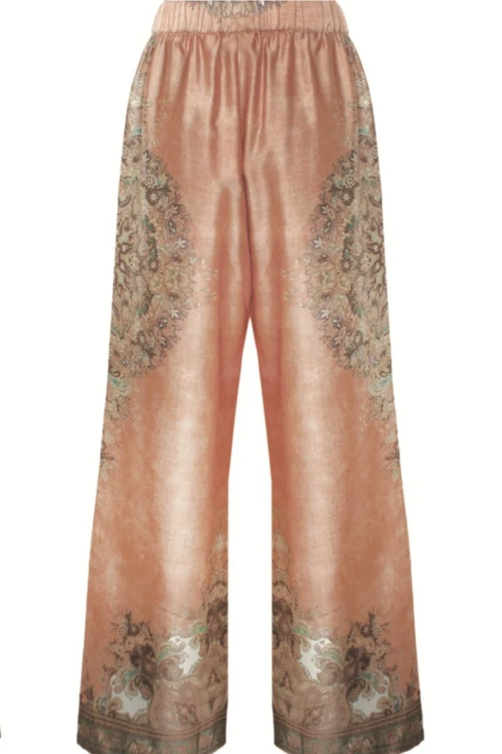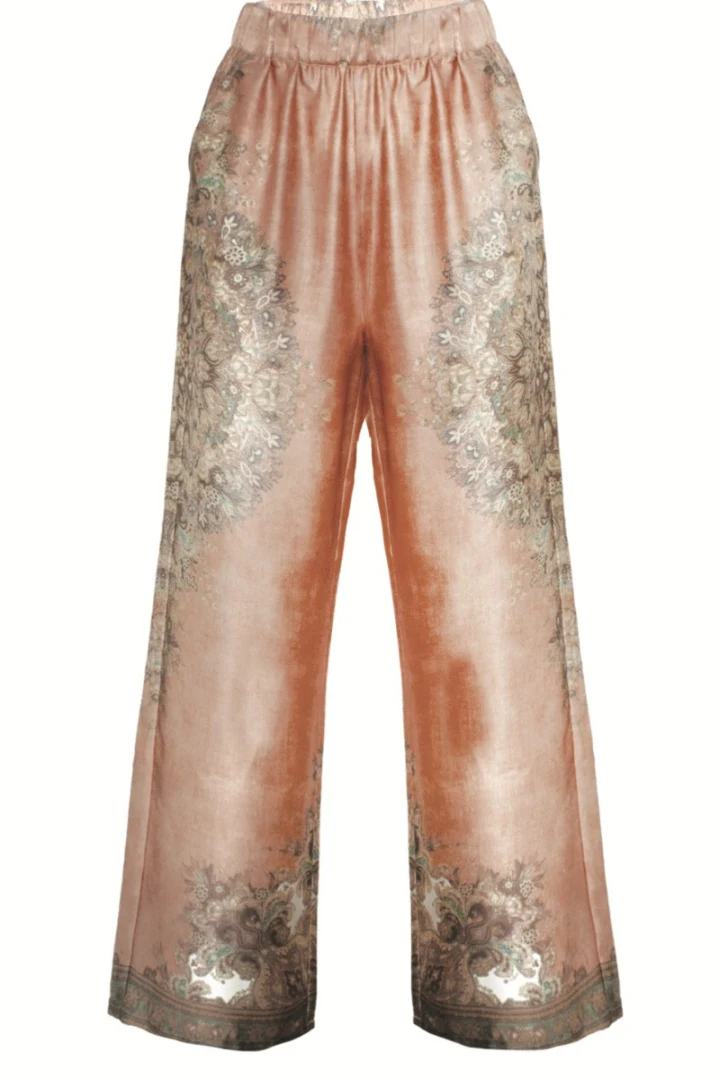 Ολοκληρώστε το απόλυτο coordinated σύνολό σας με την εντυπωσιακή Μπαρόκ Παντελόνα της AMOSA. Αυτό το κομψό γυναικείο wide-leg παντελόνι μαγνητίζει τα βλέμματα με το περίτεχνο μπαρόκ print του, το οποίο αναδεικνύεται μοναδικά πάνω στην απαλή ροδακινί απόχρωση. Είναι κατασκευασμένο από 100% πολυεστέρα, δημιουργώντας ένα ελαφρύ, σταθερό ύφασμα που προσφέρει μια πολυτελή, σατέν (μεταξένια) αίσθηση στο δέρμα. Η κανονική του γραμμή εξασφαλίζει “effortless” κομψότητα, ενώ η προσθήκη πρακτικού λάστιχου στη μέση εγγυάται απόλυτη άνεση και ευελιξία κινήσεων καθ’ όλη τη διάρκεια της ημέρας. Ο προσεγμένος σχεδιασμός του ολοκληρώνεται με δύο λειτουργικές πλαϊνές τσέπες. Αποτελεί το ιδανικό πασπαρτού κομμάτι για casual εμφανίσεις, δουλειά ή βραδινές εξόδους. Συνδυάστε το τέλεια με την ασορτί μπαρόκ πουκαμίσα της συλλογής για ένα ακαταμάχητο, chic look από το πρωί έως το βράδυ.