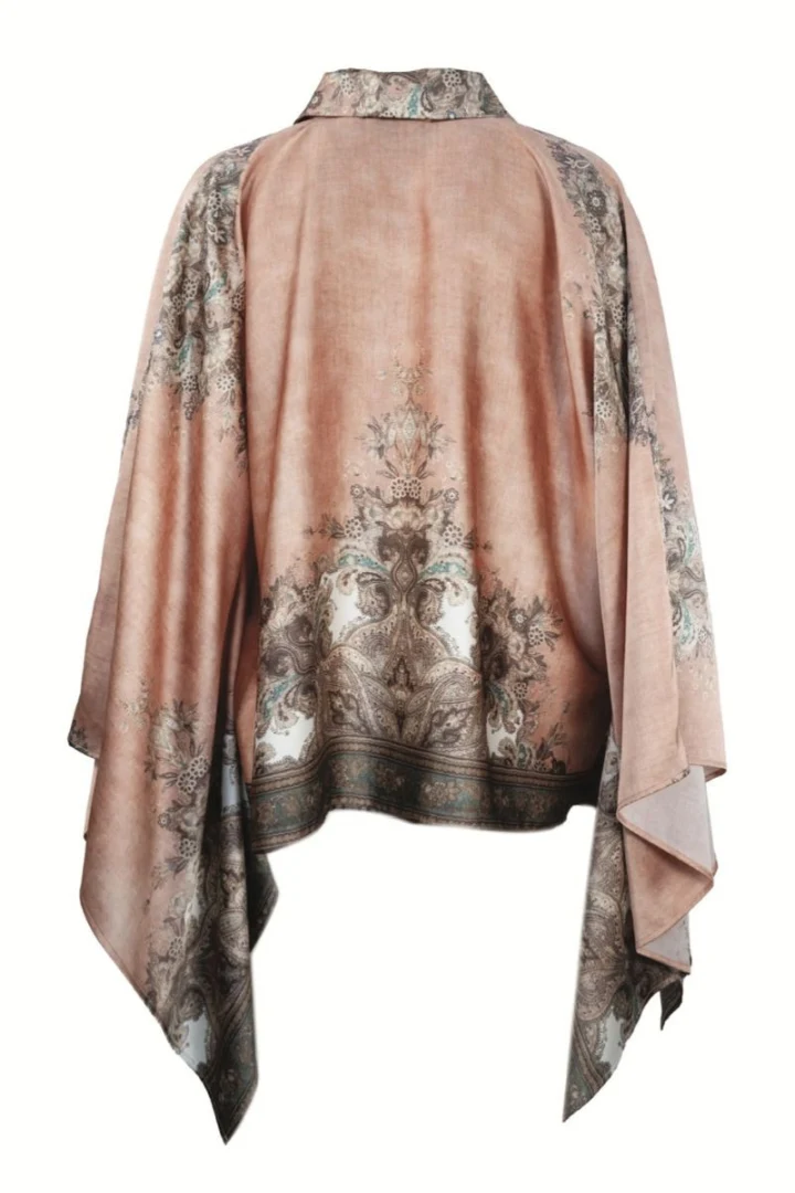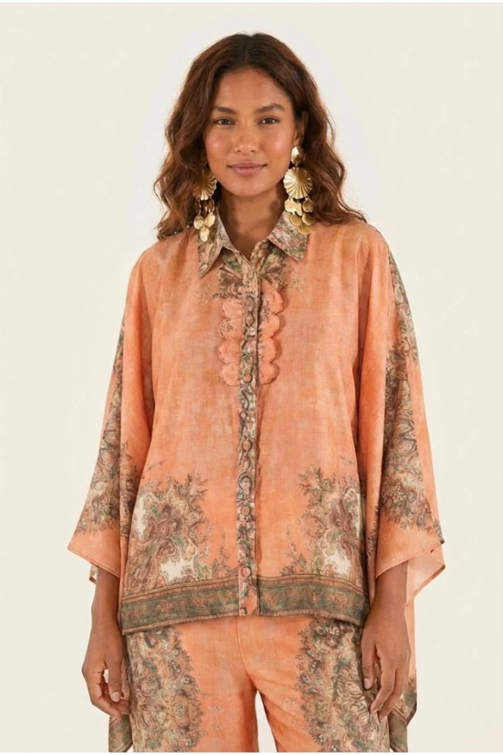 Εμπλουτίστε τη συλλογή σας με μια δόση καθημερινής πολυτέλειας, επιλέγοντας την εντυπωσιακή Μπαρόκ Πουκαμίσα της AMOSA. Αυτή η εκπληκτική γυναικεία αέρινη μπλούζα μαγνητίζει τα βλέμματα χάρη στο περίτεχνο μπαρόκ print της, το οποίο αναδεικνύεται μοναδικά πάνω σε μια γλυκιά, απαλή ροδακινί απόχρωση. Ο σχεδιασμός της αποπνέει ρομαντισμό και θηλυκότητα, διαθέτοντας έναν εξαιρετικά κομψό γιακά με βολάν και χαλαρά μακριά μανίκια. Είναι κατασκευασμένη από 100% πολυεστέρα, δημιουργώντας ένα ελαφρύ, σταθερό ύφασμα που προσφέρει μια υπέροχη μεταξένια αίσθηση στο δέρμα. Η χαλαρή της εφαρμογή (relaxed fit) εξασφαλίζει “effortless” κομψότητα και απόλυτη άνεση, καθιστώντας την το τέλειο πασπαρτού: από το γραφείο και τις casual πρωινές βόλτες, μέχρι τις βραδινές σας εξόδους. Συνδυάστε την άψογα με το ασορτί μπαρόκ παντελόνι της συλλογής για να δημιουργήσετε το απόλυτο coordinated, chic σύνολο που ξεχωρίζει από το πρωί έως το βράδυ.