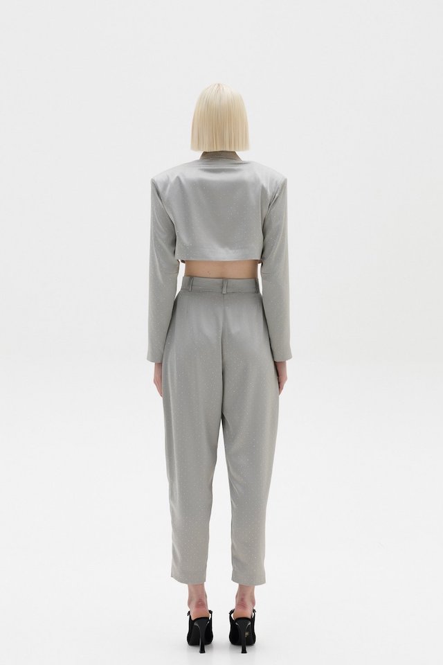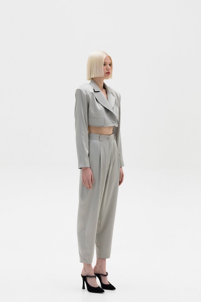 Ψηλόμεσο παντελόνι σε άνετη γραμμή στο ύψος του αστραγάλου με πιέτa μπροστά και τσέπες.