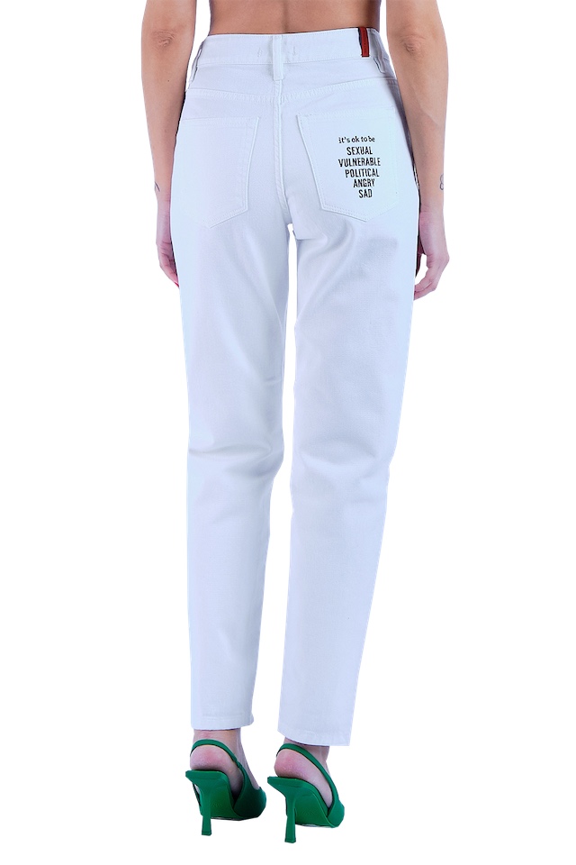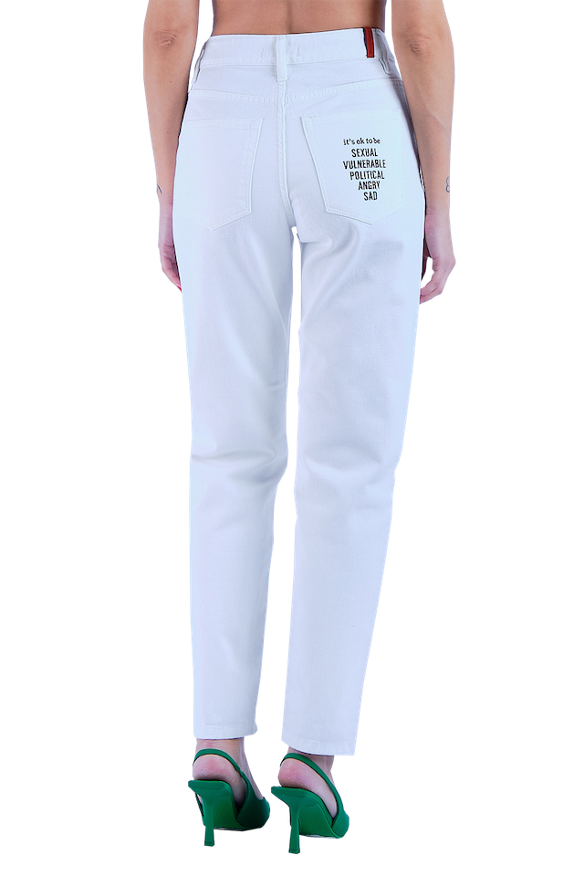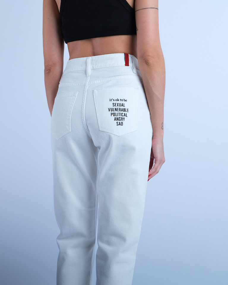 Το Avery είναι φτιαγμένο από σταθερό βαμβακερό ύφασμα. Έχει ίσια γραμμή με άνεση στους γοφούς και κλείνει ελαφρώς προς τα κάτω. Η μέση του είναι ψηλή, εφαρμοστή και είναι έτσι σχεδιασμένη ώστε να σχηματίζει ένα σχήμα V μπροστά που φτάνει λίγο πιο κάτω από τον αφαλό. Το Avery στην λευκή πλύση συνοδεύεται από το δυναμικό Statement It’s ok. Φορέστε το με tank tops και σακάκια και ολοκληρώστε το look σας με sneakers ή ψηλά παπούτσια αντίστοιχα.