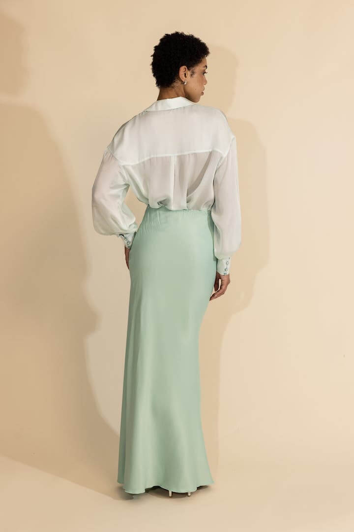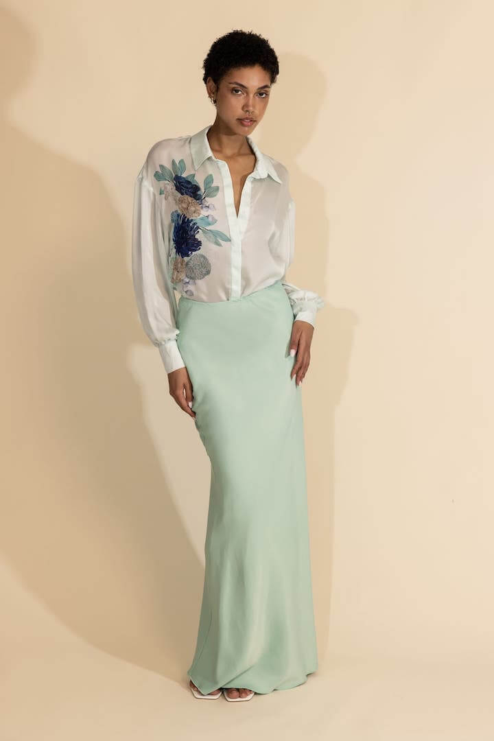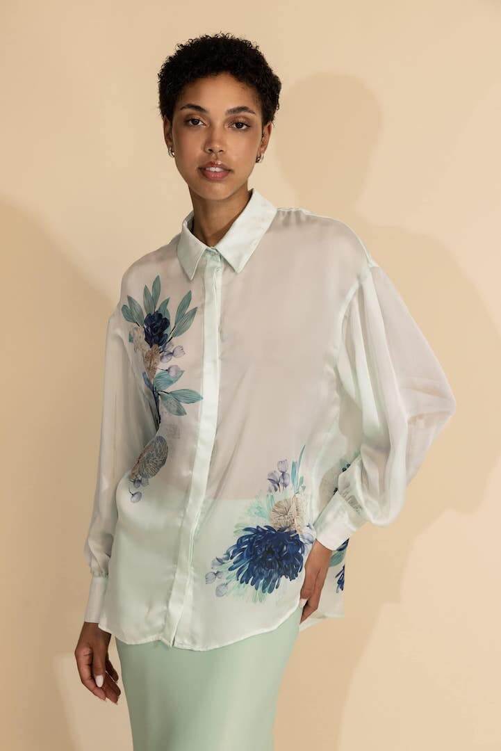 Ελαφρύ, δροσερό και αβίαστα κομψό, το Aurelia Shirt είναι ένα ευέλικτο κομμάτι με μια ξεχωριστή καλλιτεχνική πινελιά. Φτιαγμένο από αέρινη μουσελίνα σε μια εκπληκτική βάση σε σκιά από βεραμάν, αυτό το πουκάμισο παρουσιάζει μια μοναδική στάμπα με εξωτικό κοράλλι, σχεδιασμένη στο χέρι, φέρνοντας μια φρέσκια και κομψή αίσθηση. Χαλαρή one size εφαρμογή, ενώ η ασύμμετρη μακρύτερη πλάτη προσθέτει ένα μοντέρνο και εκλεπτυσμένο πλεονέκτημα. Ιδανικό για τα πάντα, από περιστασιακές εξόδους μέχρι εμφανίσεις που είναι έτοιμες για θέρετρα, αυτό το κομμάτι συνδυάζει την άνεση με το αβίαστο στυλ.