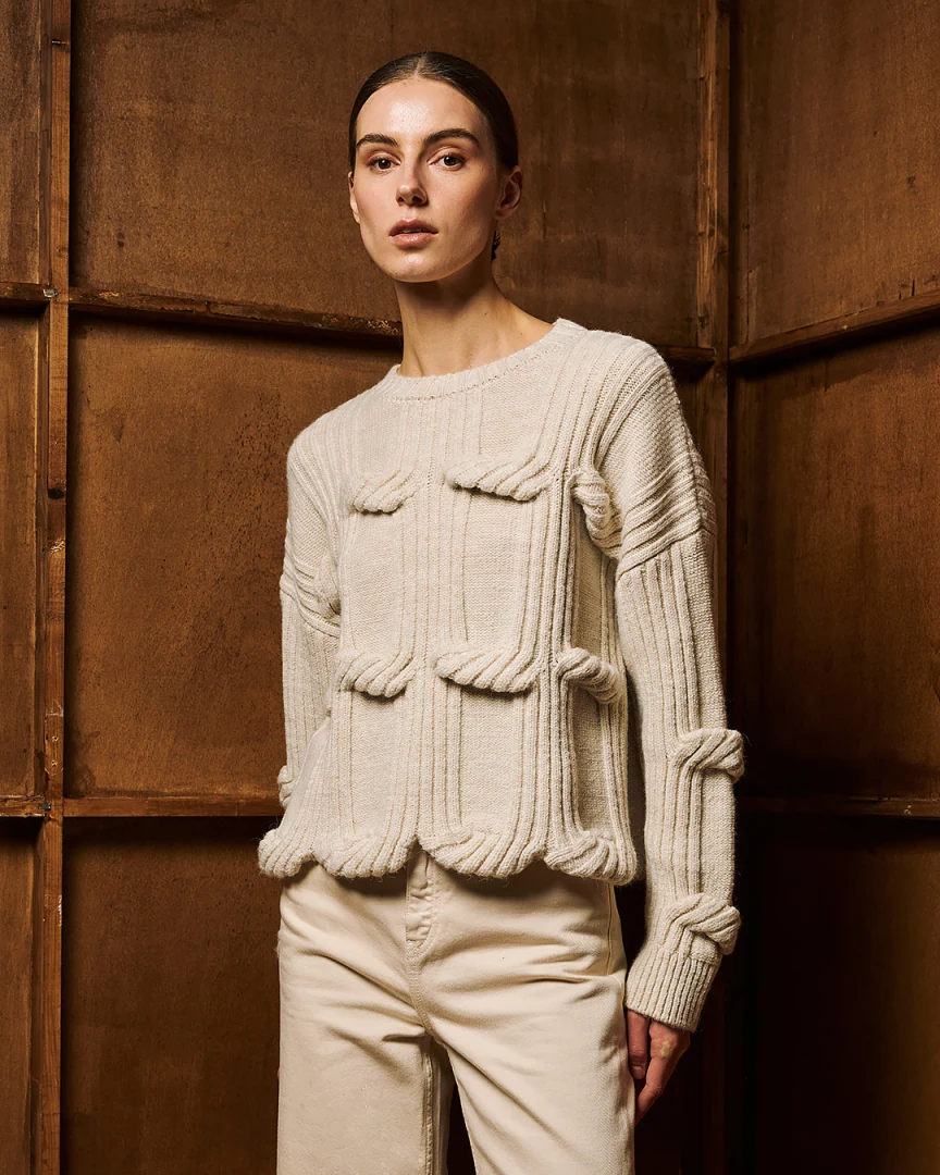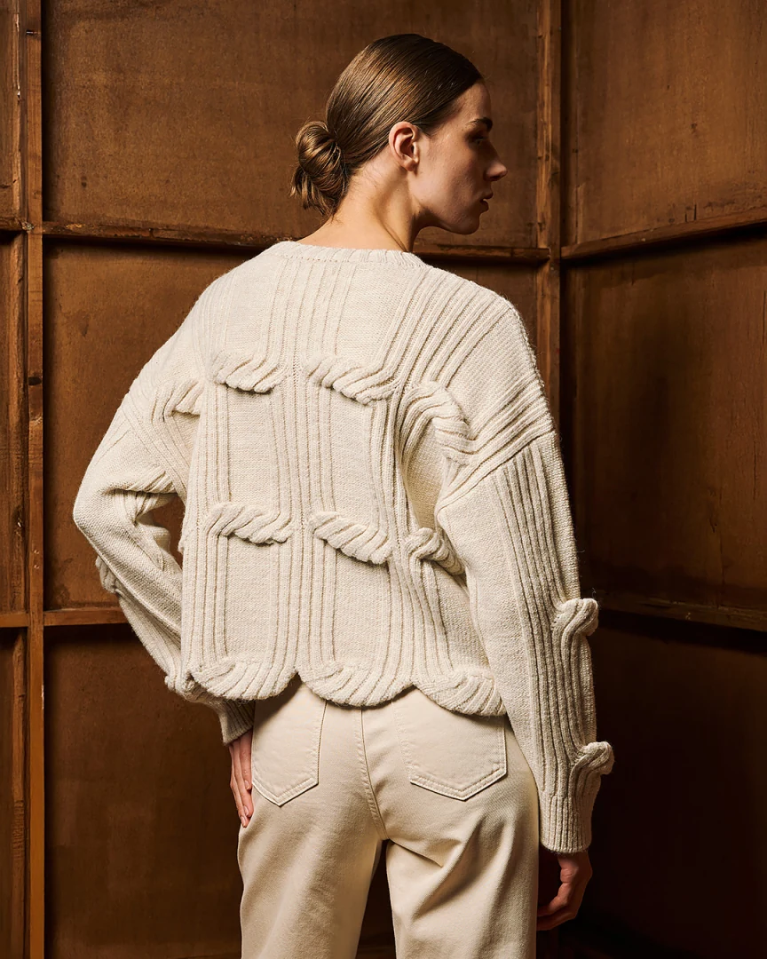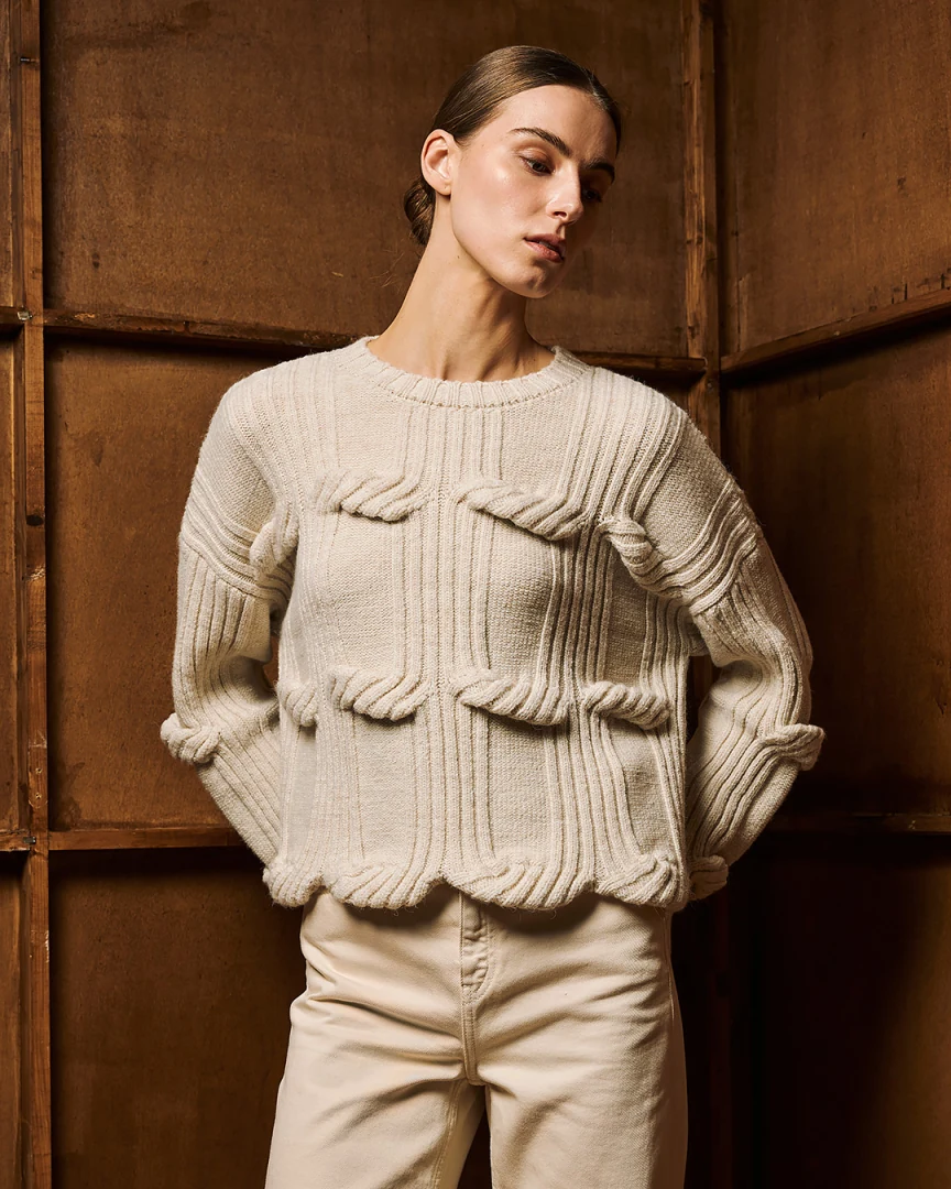 Είναι ένα πλεκτό πουλόβερ εξαιρετικά ιδιαίτερης πλέξης με πολύ ιδιαίτερο φινίρισμα στο κάτω μέρος. Είναι φτιαγμένο από πολύ απαλό νήμα που δεν τσούζει και δεν ενοχλεί καθόλου το σώμα. Είναι ένα casual πλεκτό που μπορείτε να φοράτε όλη μέρα.