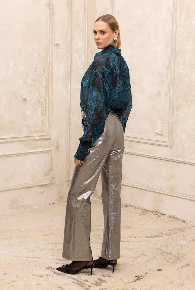 Το Kendal pant, το δερμάτινο παντελόνι με croco effect της συλλογής μας ,είναι μια τάση που αγαπάμε πολύ την φετινή σεζόν. Τα δερμάτινα παντελόνια δεν περιορίζονται πλέον μόνο στο μαύρο χρώμα, αλλά εμφανίζονται σε ζωντανές αποχρώσεις όπως το μπορντό, το λαδί, ακόμη και τα μεταλλικά, προσφέροντας ατελείωτες δυνατότητες styling. Συνδυάζεται απόλυτα με τα αντίστοιχα jackets και corsets , ενώ μπορεί εύκολα να φορεθεί με πουλόβερ και πουκάμισα.