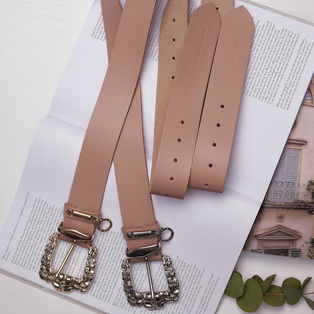 Χειροποίητη δερμάτινη ζώνη με χρυσά μεταλλικά στοιχεία.