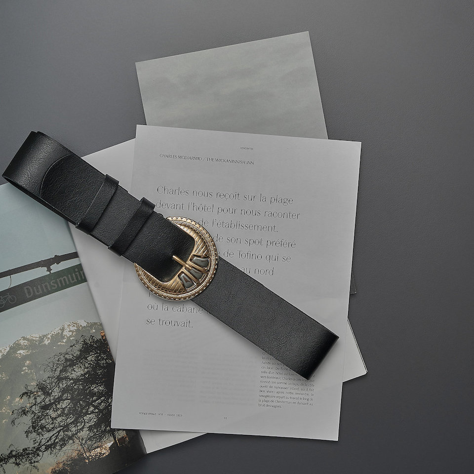 Χειροποίητη δερμάτινη ζώνη με χρυσή μεταλλική αγκράφα.