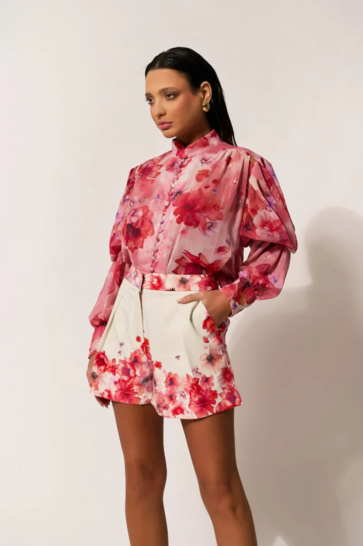 Handmade floral print exclusively designed σε κόκκινες αποχρώσεις