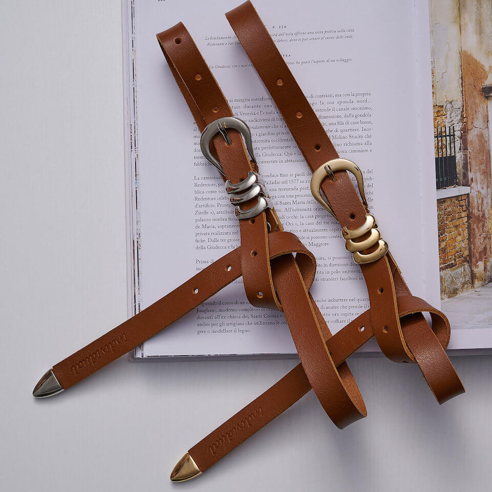 “Every Glance” Leather Belt Taba Nickel