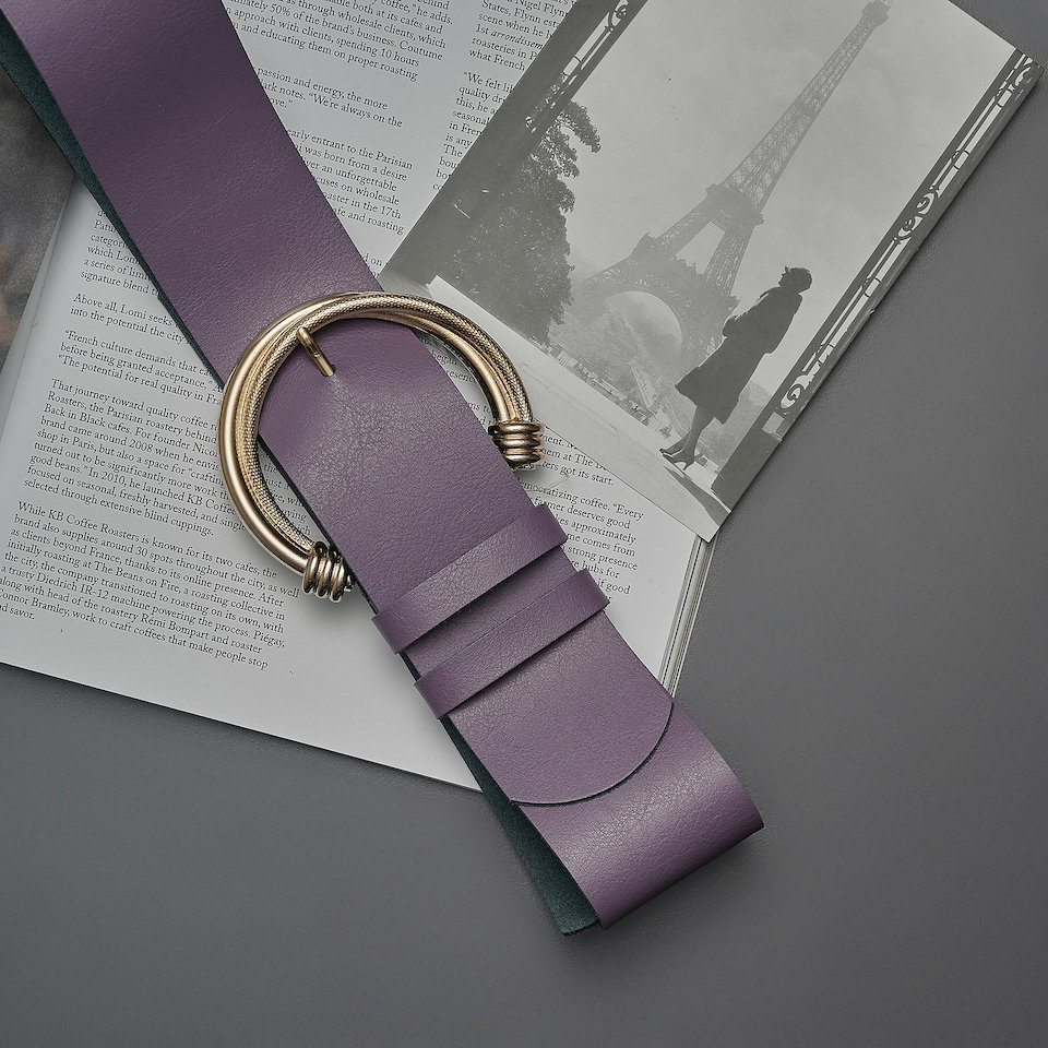 Χειροποίητη δερμάτινη ζώνη με χρυσή μεταλλική αγκράφα.