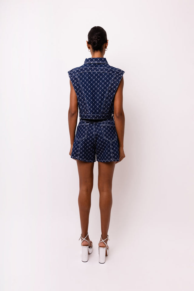 GOLDIE DENIM DIAMOND PATTERN SHORTS