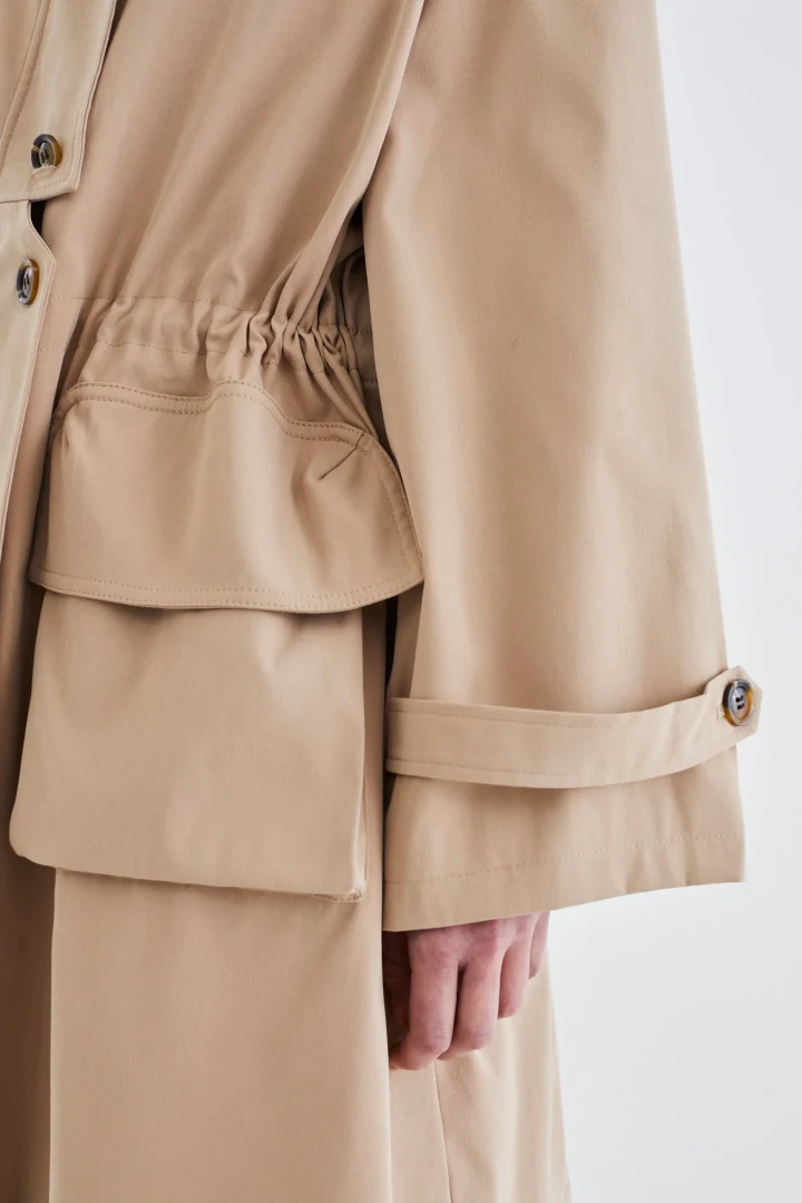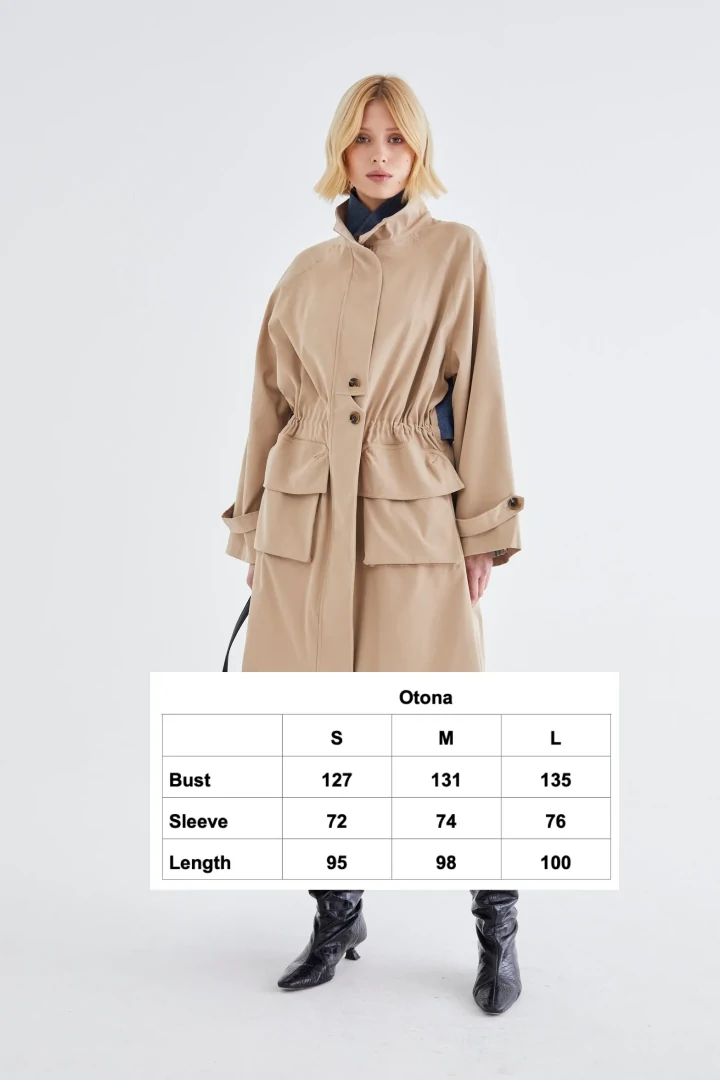 Κατασκευασμένο από ένα εκλεπτυσμένο μείγμα τζιν και μπεζ βαμβακιού, το μπουφάν OTONA προσφέρει μια εκλεπτυσμένη εκδοχή του κλασικού midi trench. Οι μεγάλες τσέπες του προσφέρουν πρακτική κομψότητα, ιδανικές για να μεταφέρετε τα απαραίτητα, διατηρώντας παράλληλα μια κομψή σιλουέτα. Αυτό το ευέλικτο κομμάτι συνδυάζει το διαχρονικό στυλ με τον λειτουργικό σχεδιασμό, ιδανικό για να αναβαθμίσετε την γκαρνταρόμπα σας με διακριτική πολυτέλεια.
