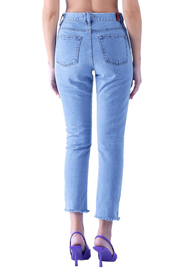 Το Kelly είναι σχεδιασμένο σε στενή ίσια γραμμή, με ψηλή μέση κι ελαφρώς cropped. Διαθέτει διακριτικά φθαρσίματα στο τελείωμα του παντελονιού όπως επίσης και στην ζώνη τα οποία του δίνουν μια αίσθηση παλιού φορεμένου τζιν.