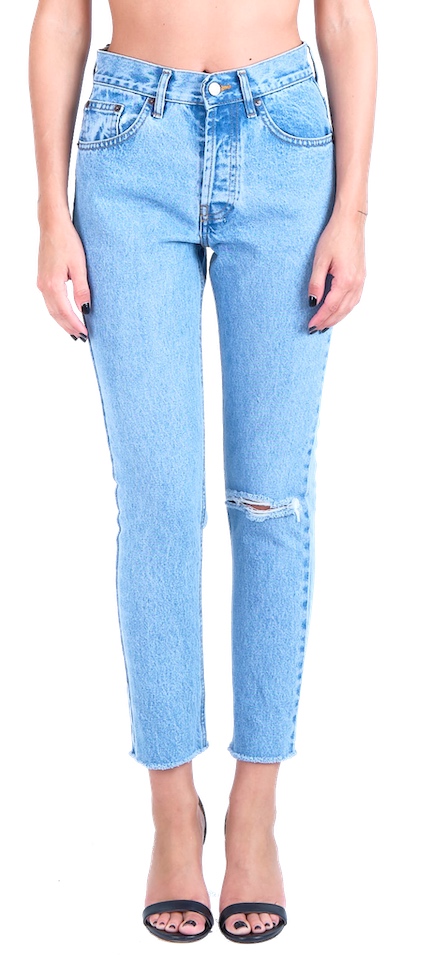 Σχεδιάστηκε σε στενή γραμμή, ψηλόμεσο και ελαφρώς cropped με μια 80s αίσθηση. Διαθέτει διακριτικά φθαρσίματα στο τελείωμα, σκισίματα και κέντημα πίσω. Με αυτά τα χαρακτηριστικά το Kelly μπορεί να αναδείξει κάθε look σας