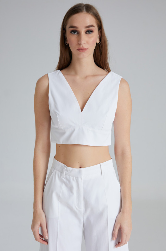 To Kimolos Top με τη φαρδιά του τιράντα, βαθύ ντεκολτέ και ανάλαφρο σχεδιασμό είναι το κομμάτι που δεν μπορεί να λείπει από την συλλογή σου. Προσαρμόζεται σε κάθε σωματότυπο καθώς δένει στο πίσω μέρος του.