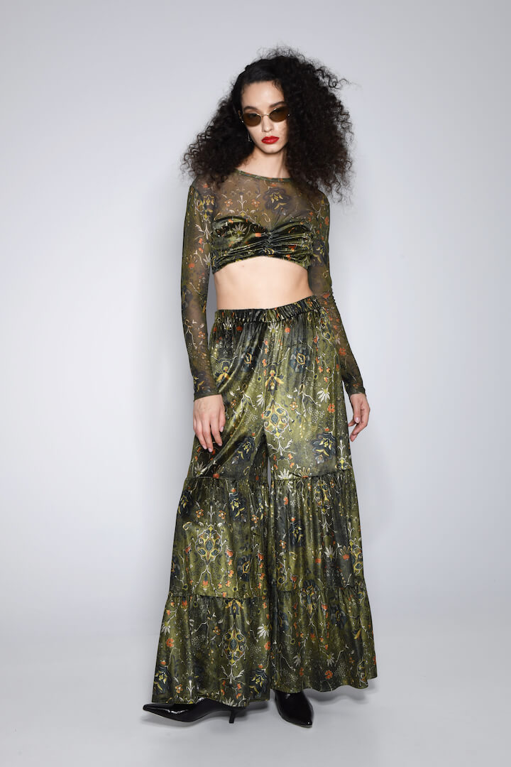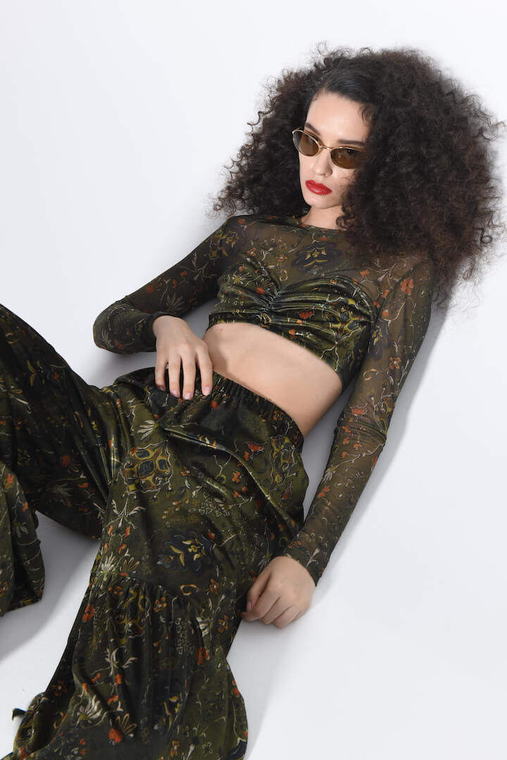 - Crop από βελούδο και τούλι με μακρύ μανίκι