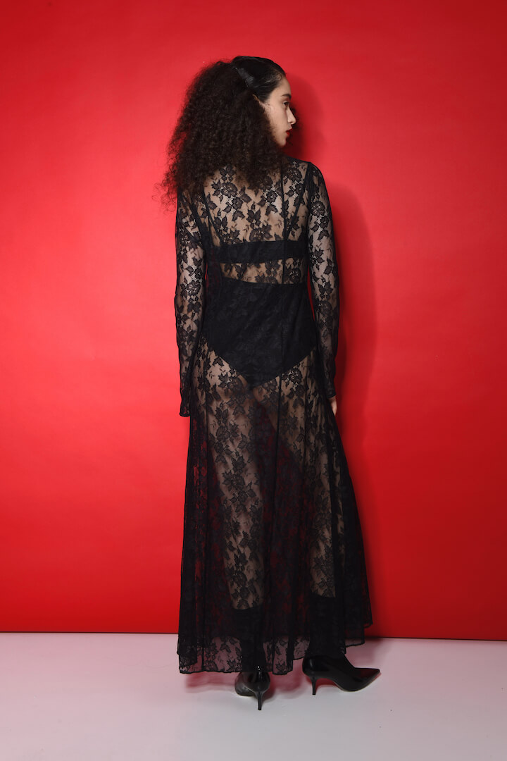 - Μακρύ φόρεμα από δαντέλα με βαθύ V άνοιγμα το οποίο μπορεί να φορεθεί μπρος πίσω