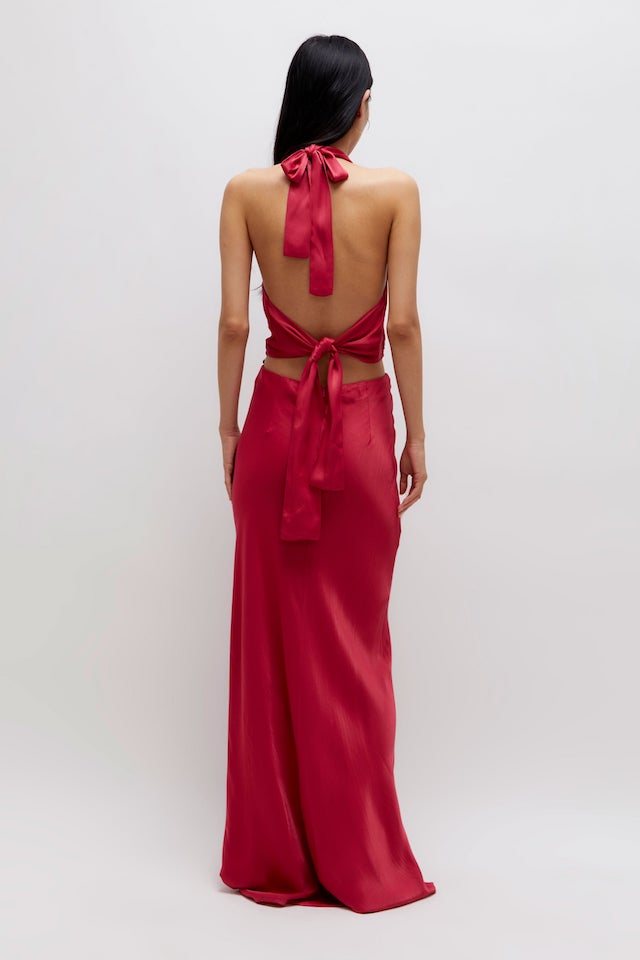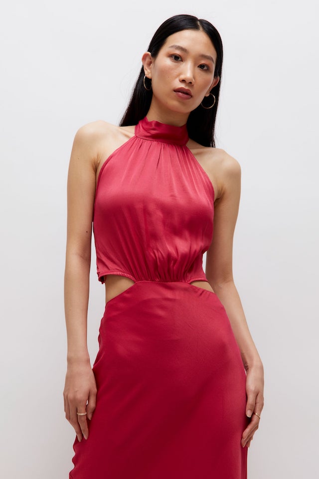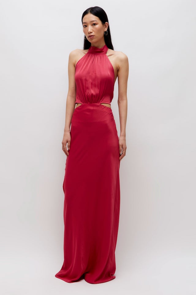 Long Pink Halter Satin Dress