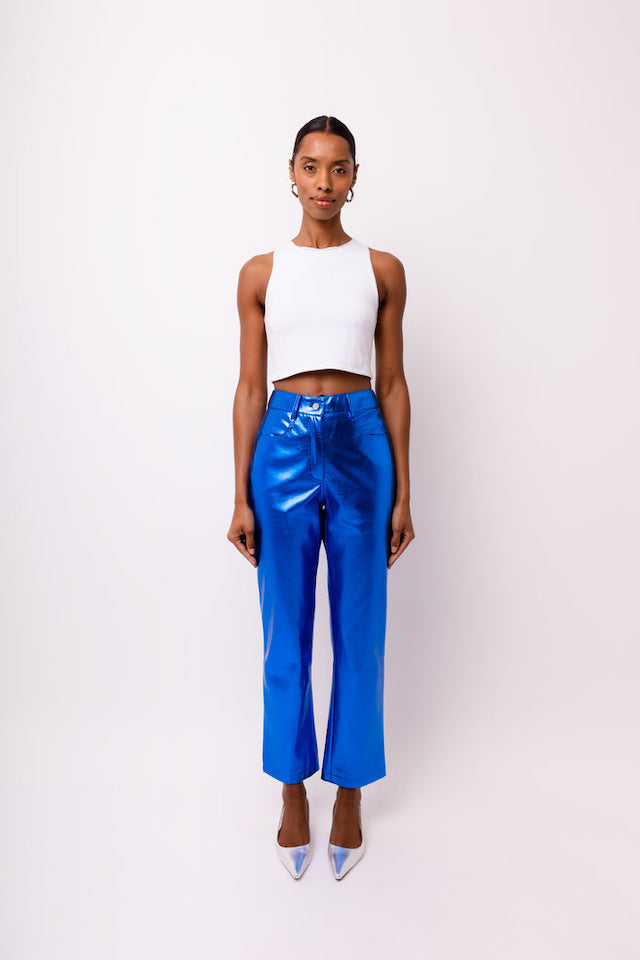 LUPE COBALT BLUE LEATHER METALLIC TROUSERS